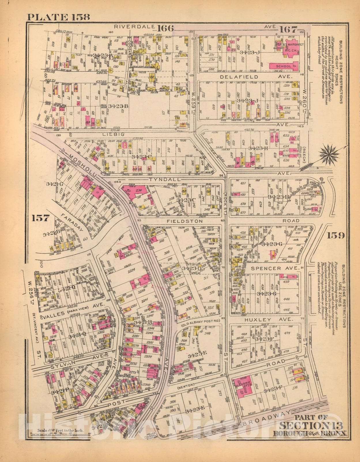 Historic Map : Borough of The Bronx, Sections 9-13, The Bronx 1928 Plate 158 , Vintage Wall Art