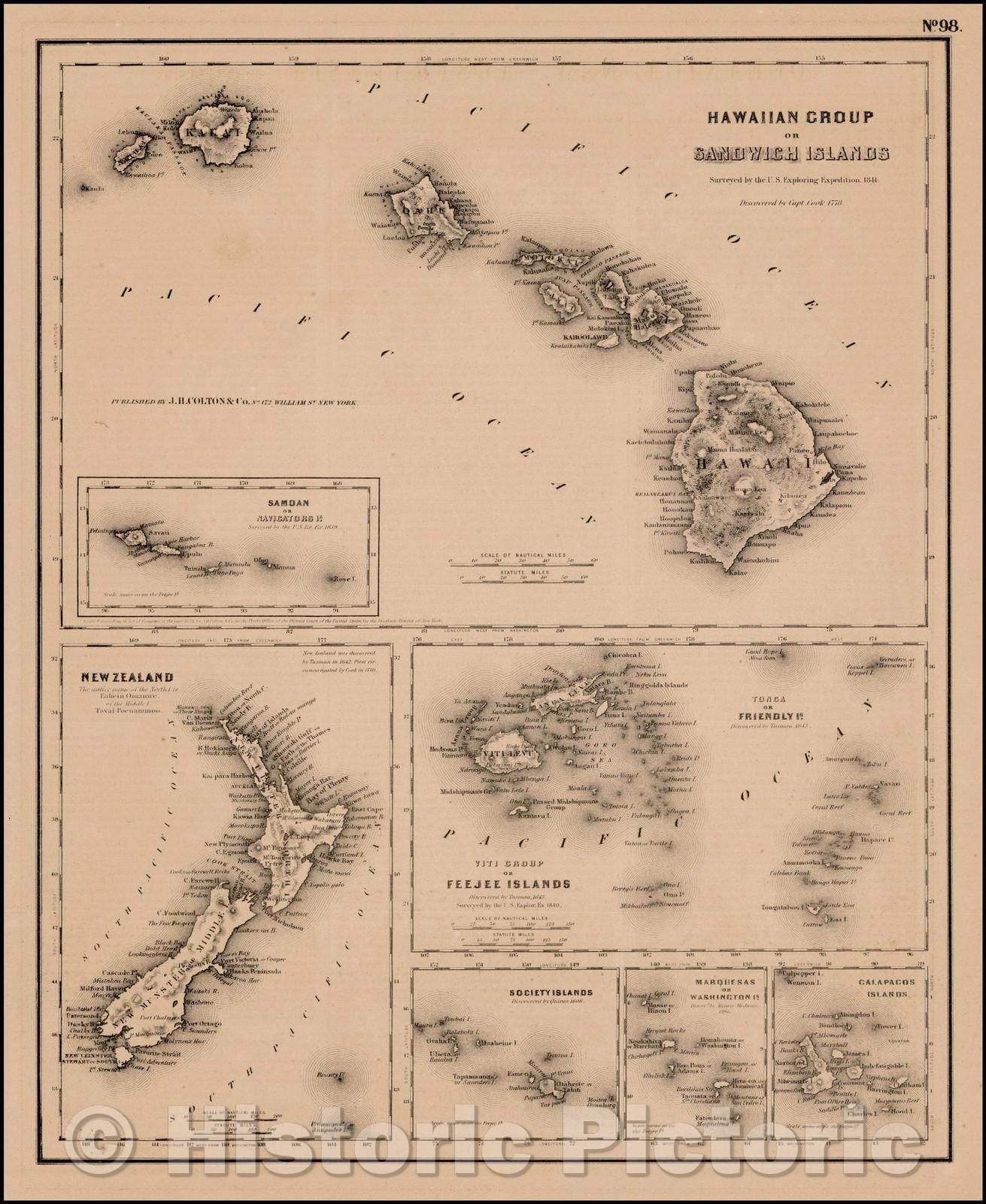 Historic Map - Hawaiian Group or Sandwich Islands [with] New Zealand [and] Feejee Group, Society Island, Marquesas and Galapagos Islands, 1857 v1