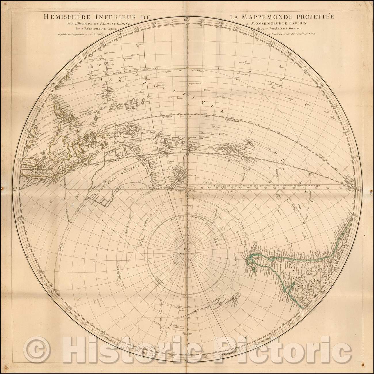 Historic Map - Hemisphere inferieur de la Mappemonde projettee sur l'horizon de Paris/Map of the South Pacific, New Zealand, 1774, Chrysologue Noel Andre - Vintage Wall Art
