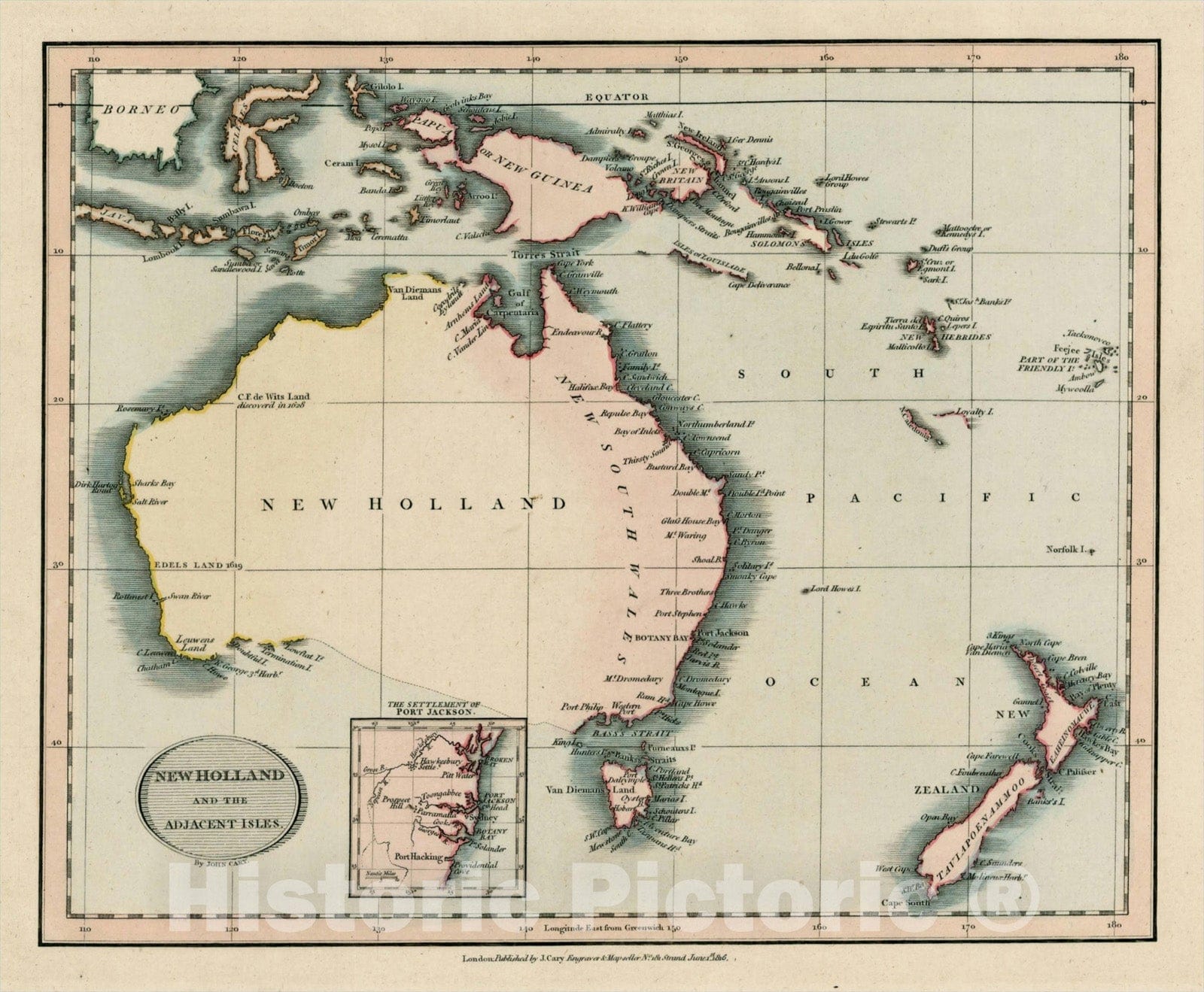 Historic Map : New Holland and the Adjacent Isles (includes New Zealand), 1816, John Cary, Vintage Wall Art