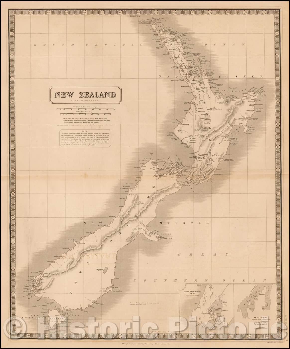 • .Historic Map - New Zealand, 1845, W. & A.K. Johnston v2