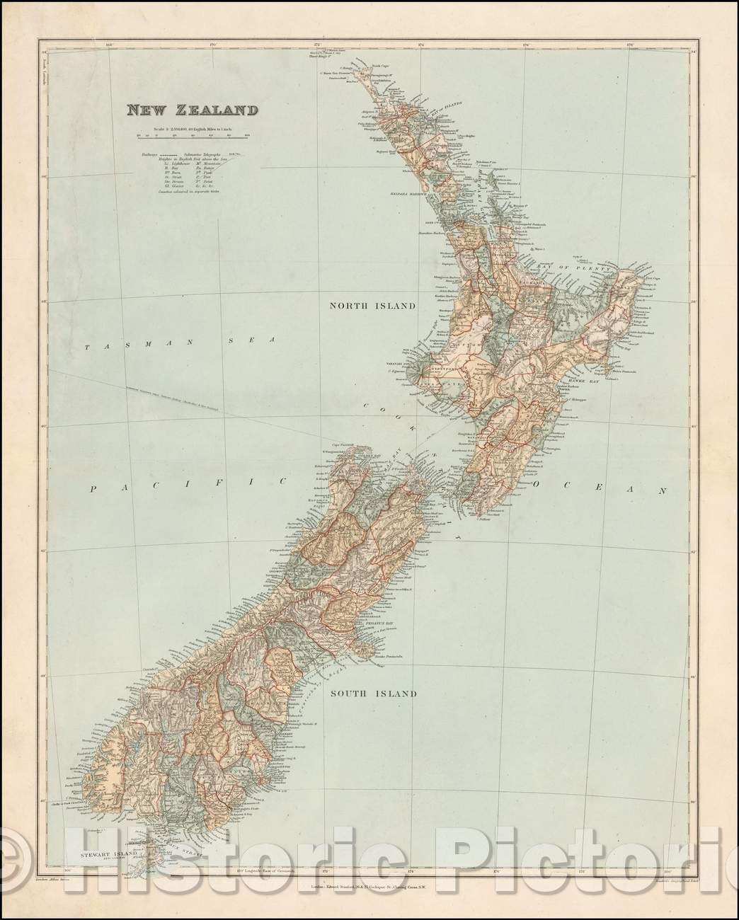 Historic Map - New Zealand, 1896, Edward Stanford v1
