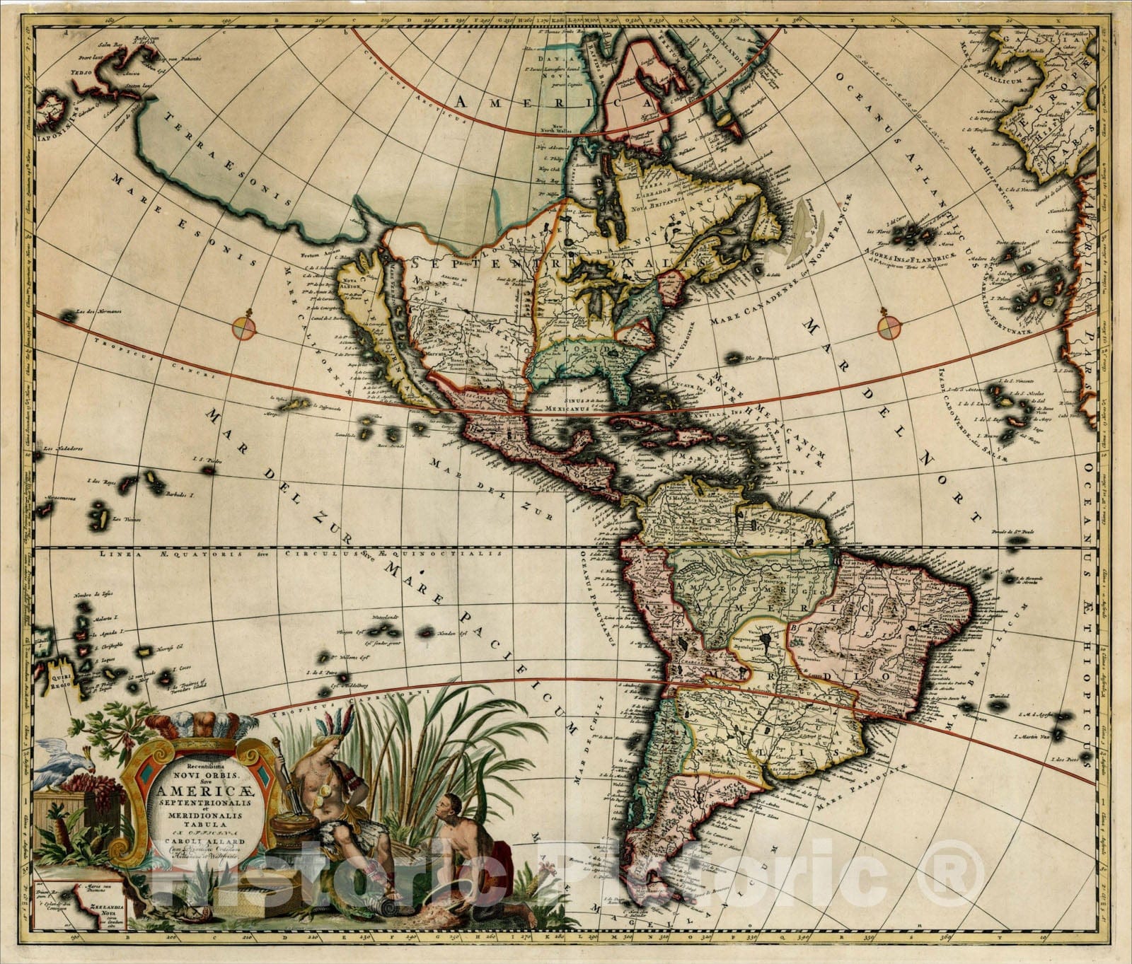 • .Historic Map : Recentissima Novi Orbis Sive Americae Septentrionali [New Zealand Inset and California as an Island], 1700, Carel Allard, v2, Vintage Wall Art
