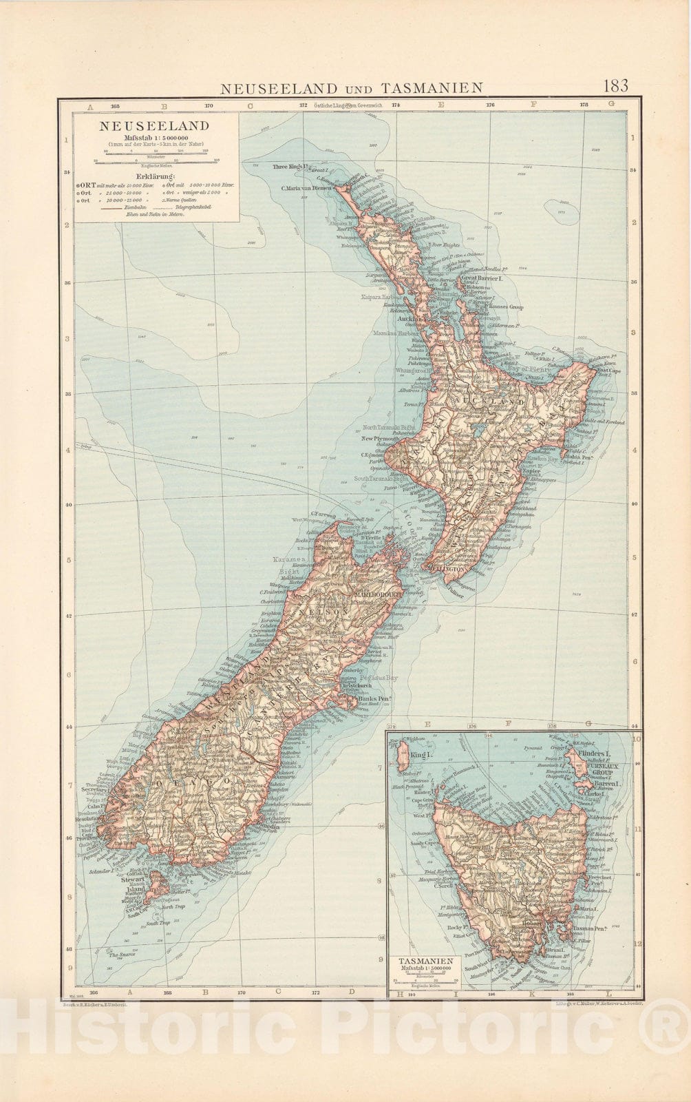 Historic Map : New Zealand 1899 , Andrees Allgemeiner Handatlas - Nirenstein, Vintage Wall Art