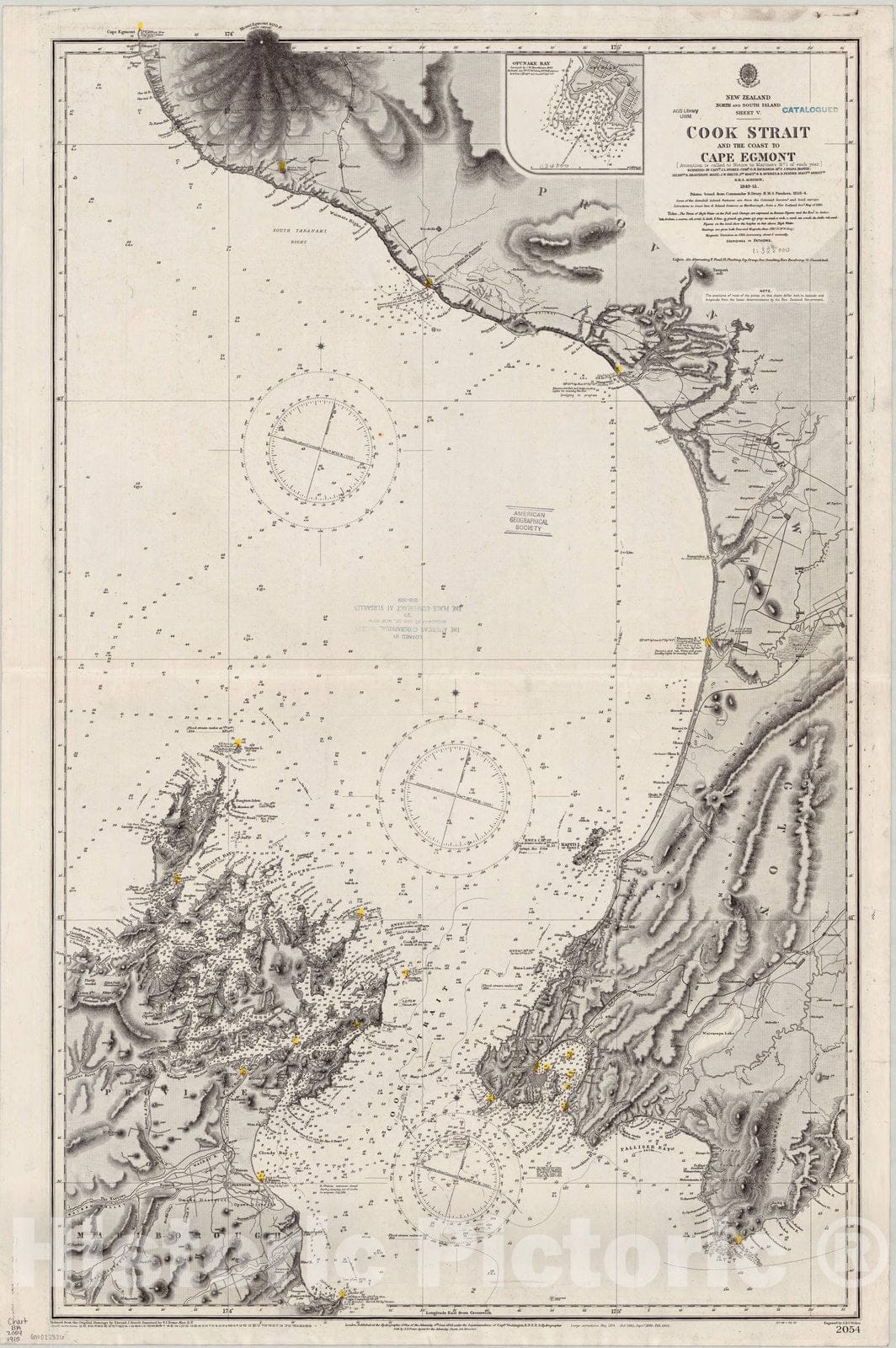 Map : New Zealand 1915, New Zealand, north and south island, sheet V, Cook Strait and the coast to Cape Egmont , Antique Vintage Reproduction