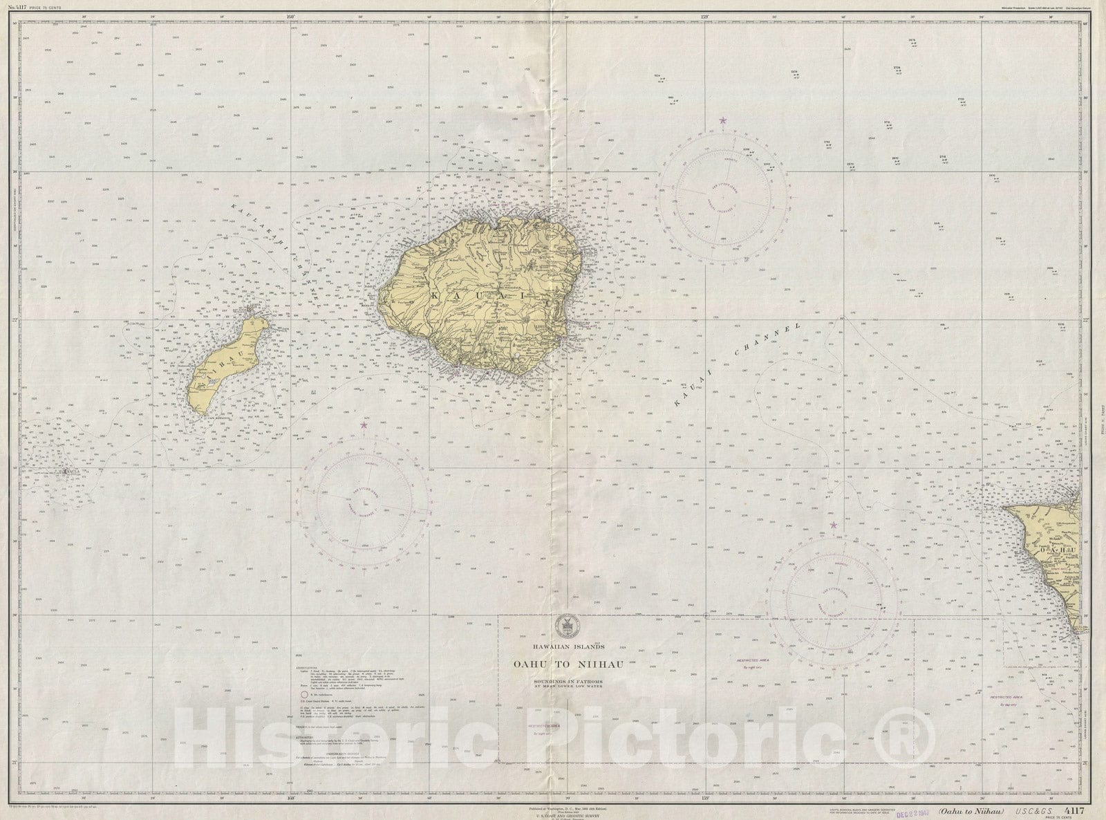 Historic Map : Nautical Chart Oahu, Kauai, Niihau, U.S. Coast Survey, 1947, Vintage Wall Art