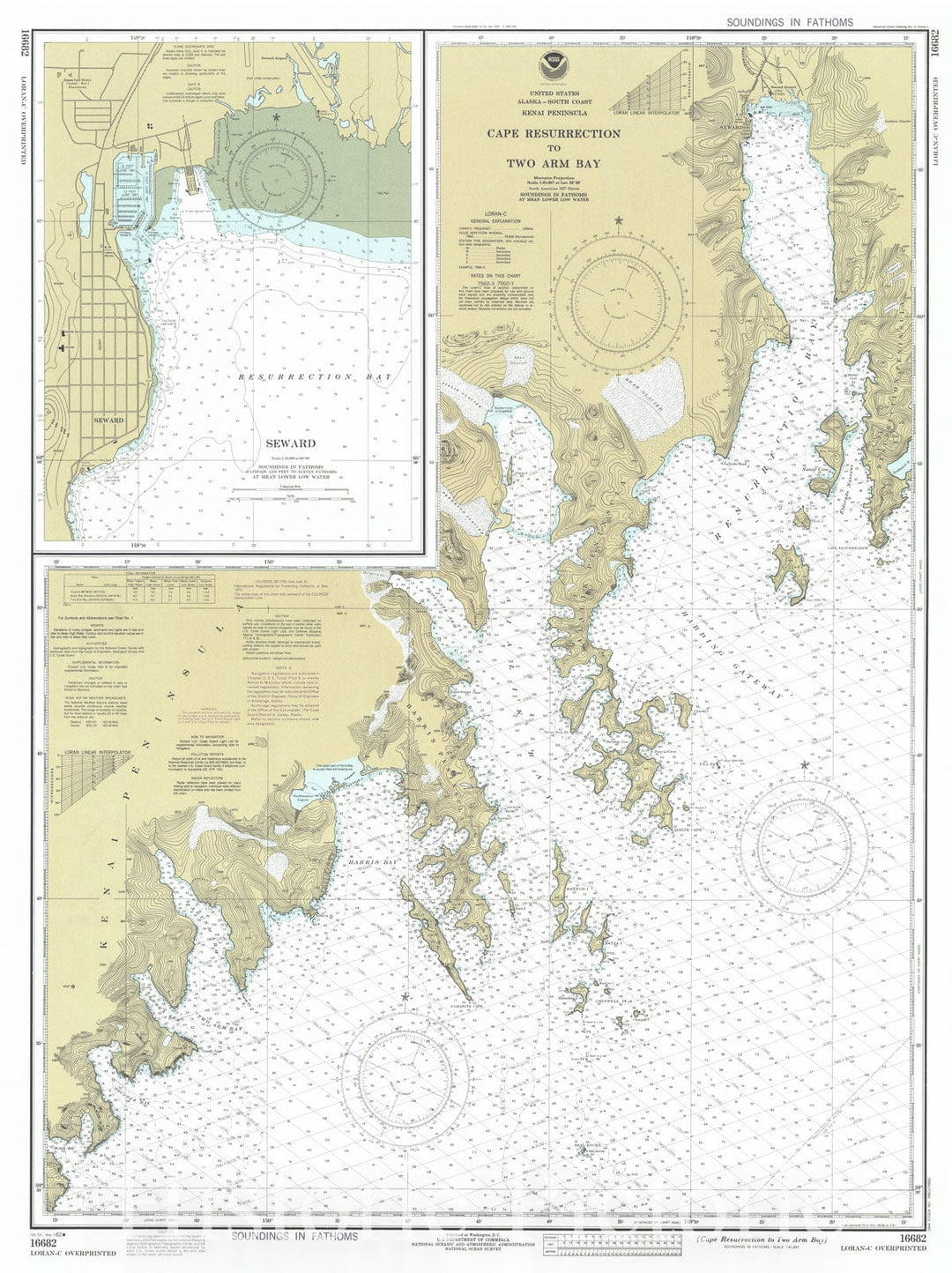 Historic Nautical Map - Cape Resurrection To Two Arm Bay, AK, 1982 NOAA Chart - Vintage Wall Art