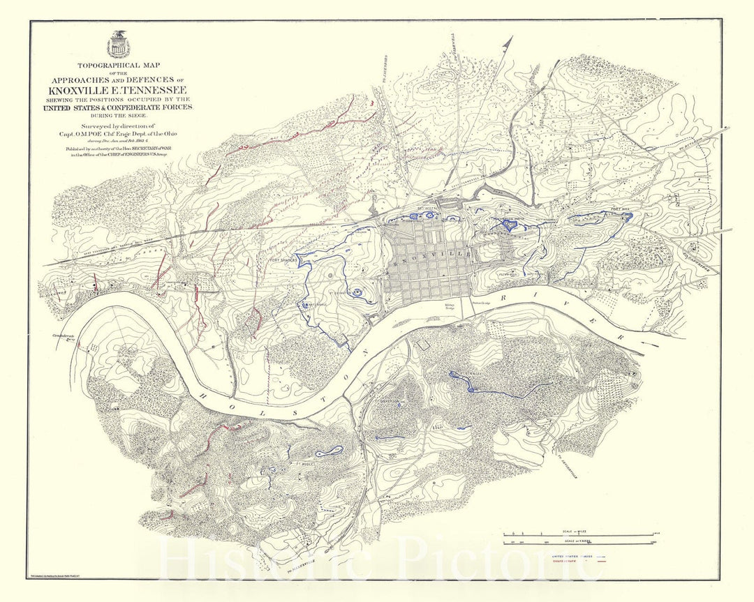 Historic Nautical Map - Approaches And Defences Of Knoxville, Tenn, TN, 1864 NOAA Civil War - Vintage Wall Art
