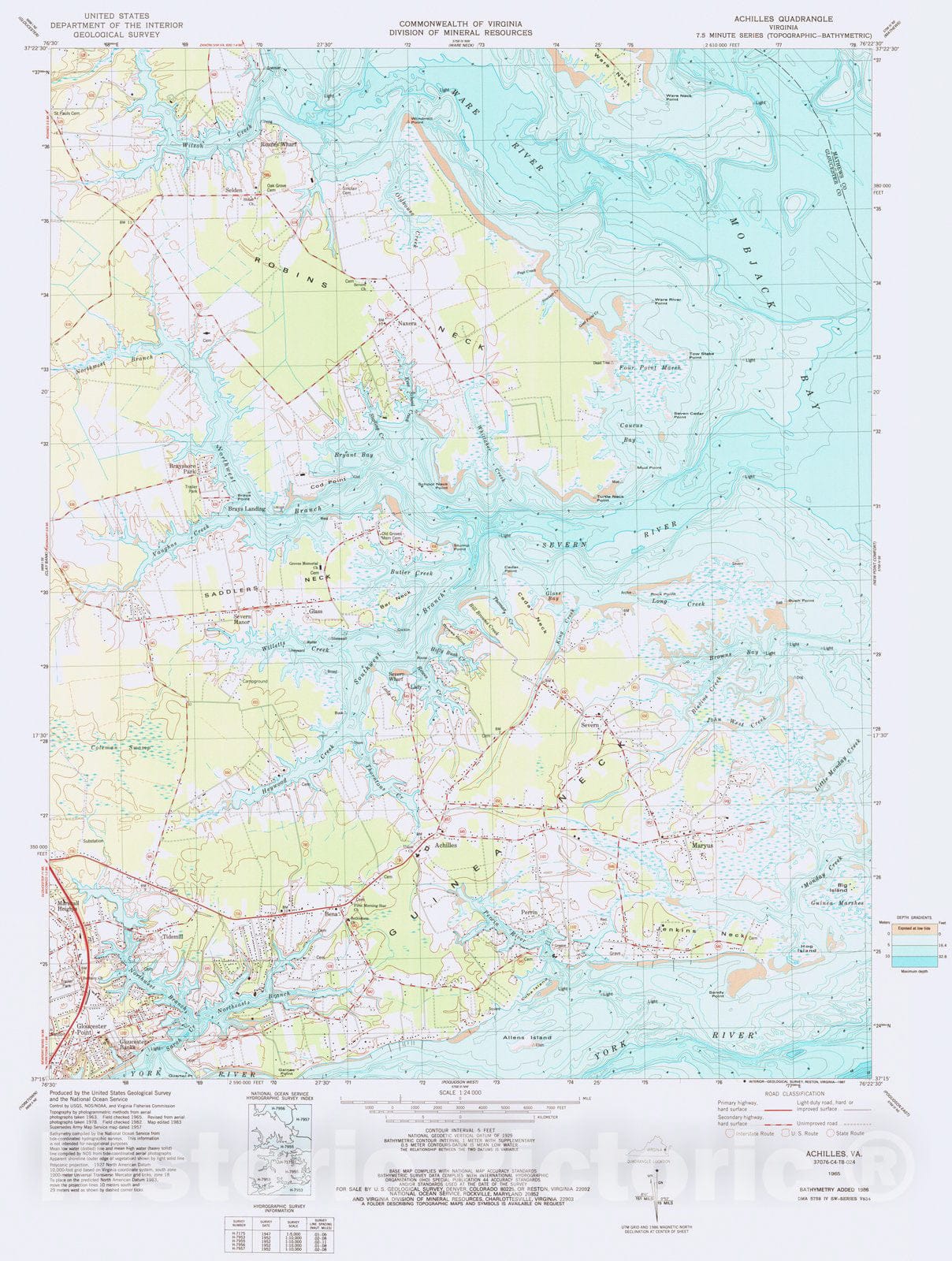 Historic Nautical Map - Achilles, VA, 1965 NOAA Topographic Bathymetric Historic Nautical Map - Vintage Wall Art
