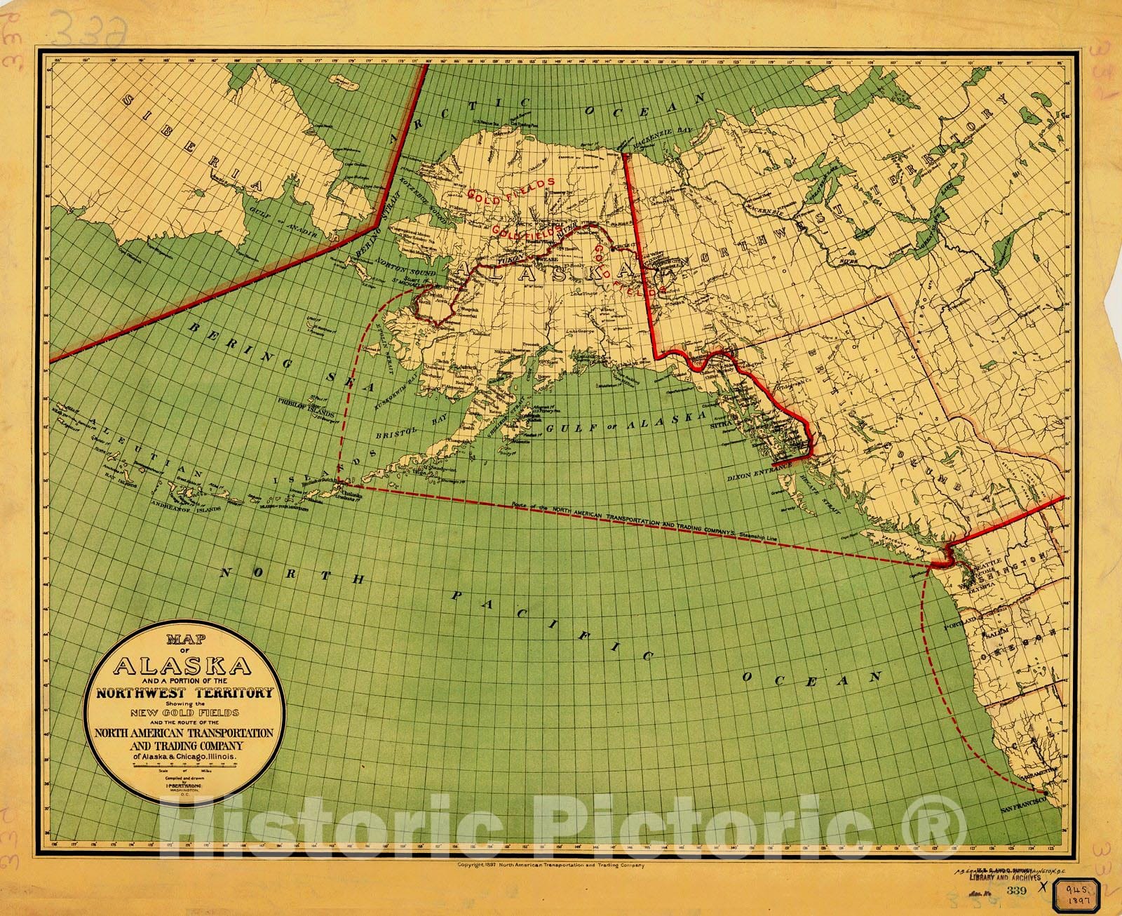 • .Historic Nautical Map - Map Of Alaska And A Portion Of The Territory Showing The New Gold Fields, 1897 NOAA Chart - Vintage Poster Wall Art Reprint - 0