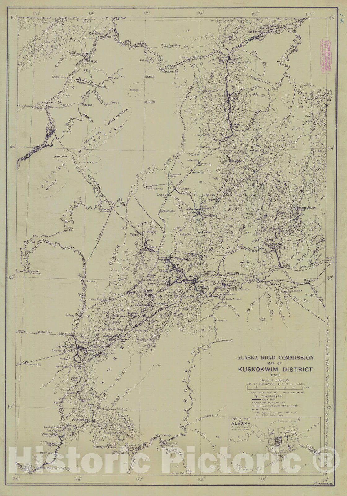 Historic Nautical Map - Alaska Road Commission Map Of Kuskokwim District, AK, 1923 NOAA Topographic - Vintage Wall Art