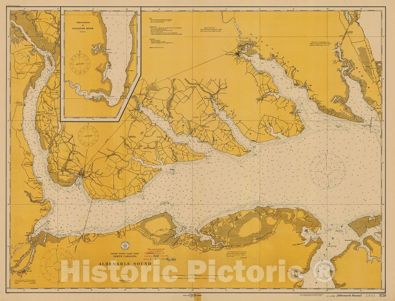 Historic Nautical Map - Albemarle Sound, 1913 NOAA Chart - North Carolina (NC) - Vintage Wall Art