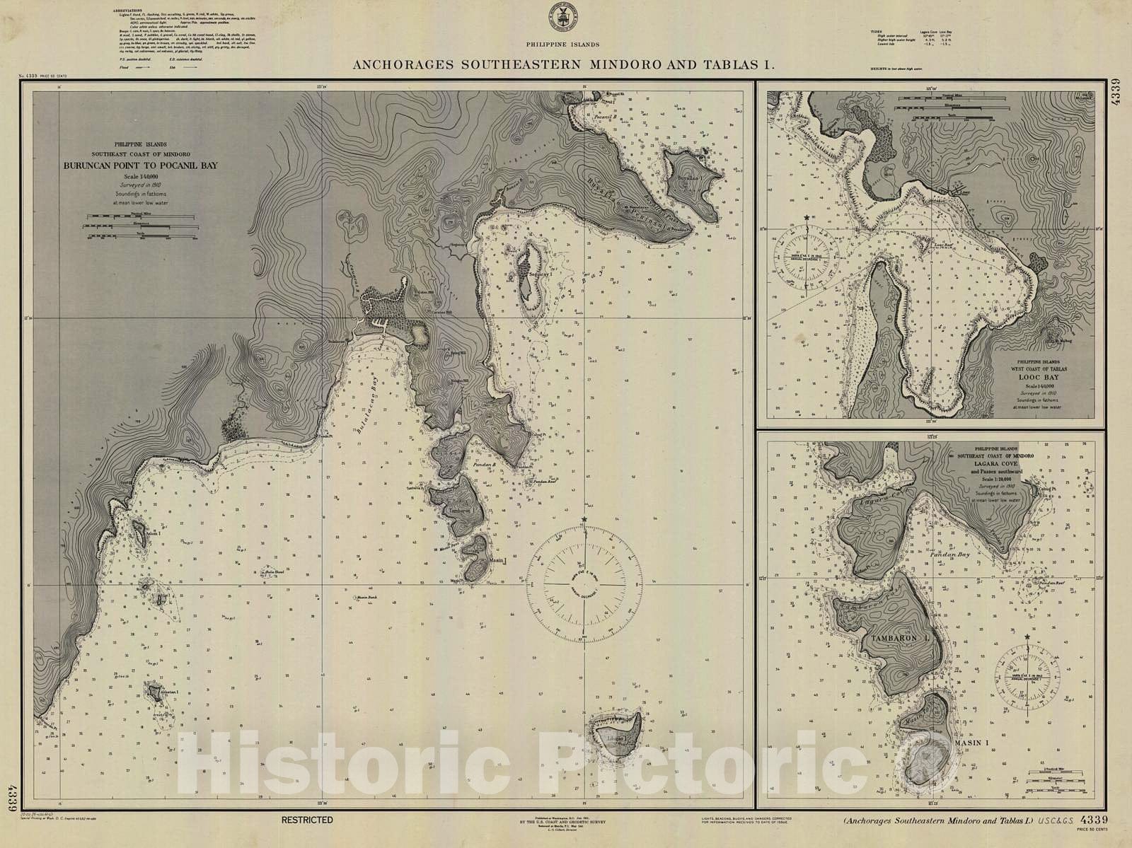 • .Historic Nautical Map - Anchorages Southeastern Mindoro And Tablas I, 1941 NOAA Chart - PHVintage Wall Art