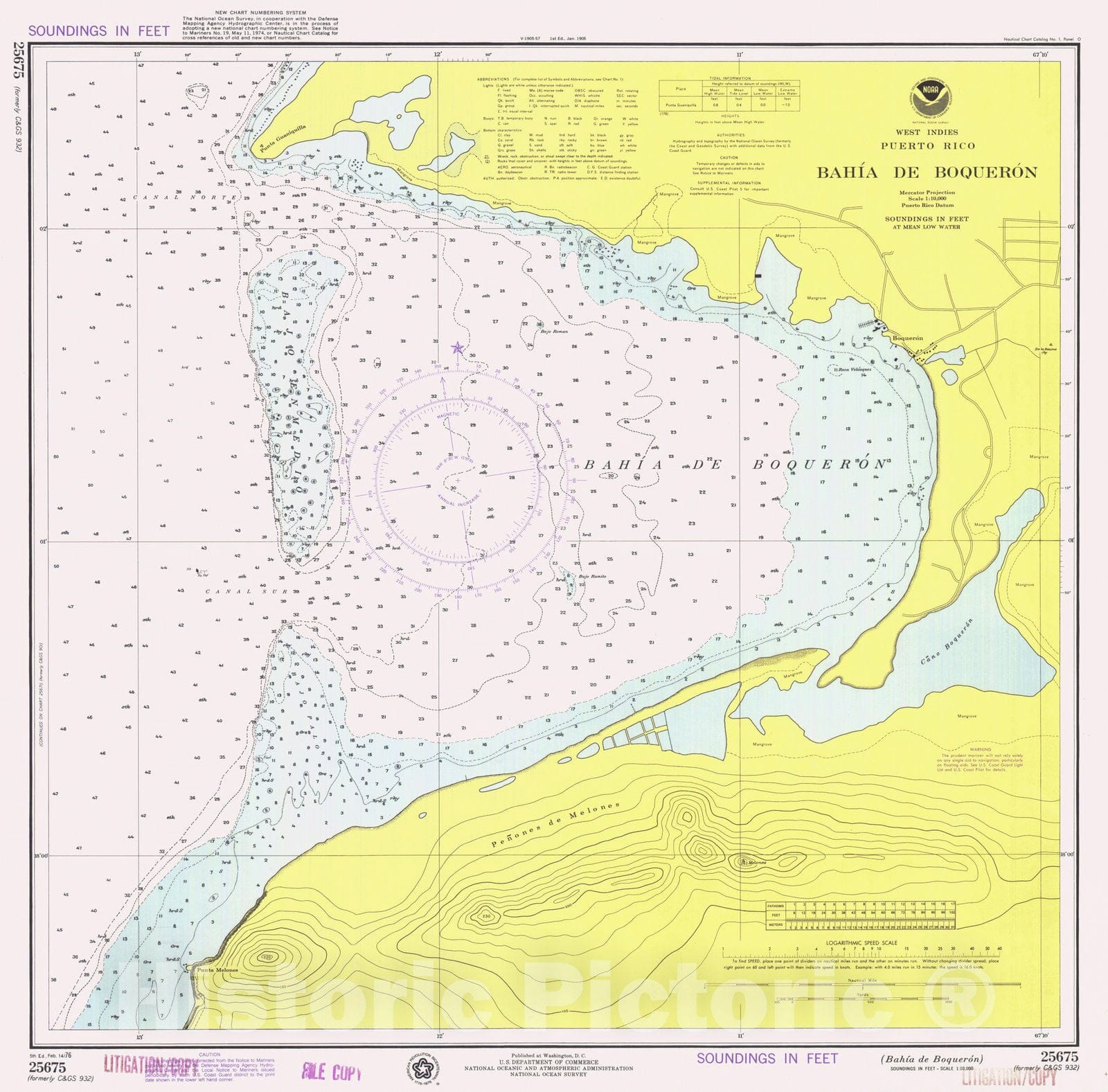 • .Historic Nautical Map - Bahia De Boqueron, PR, 1976 NOAA Chart - Vintage Wall Art
