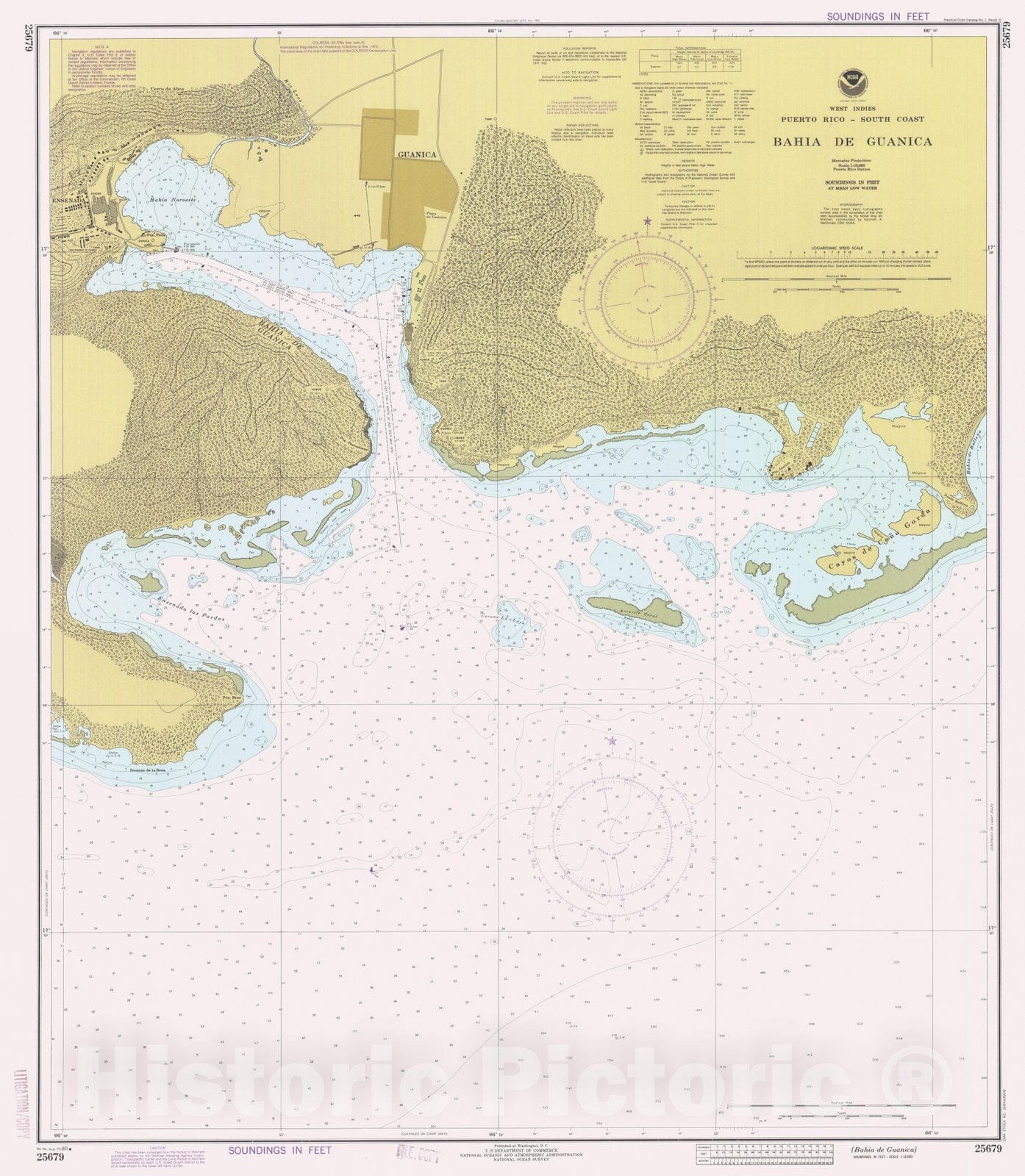 Historic Nautical Map - Bahia De Guanica, PR, 1980 NOAA Chart - Vintage Wall Art