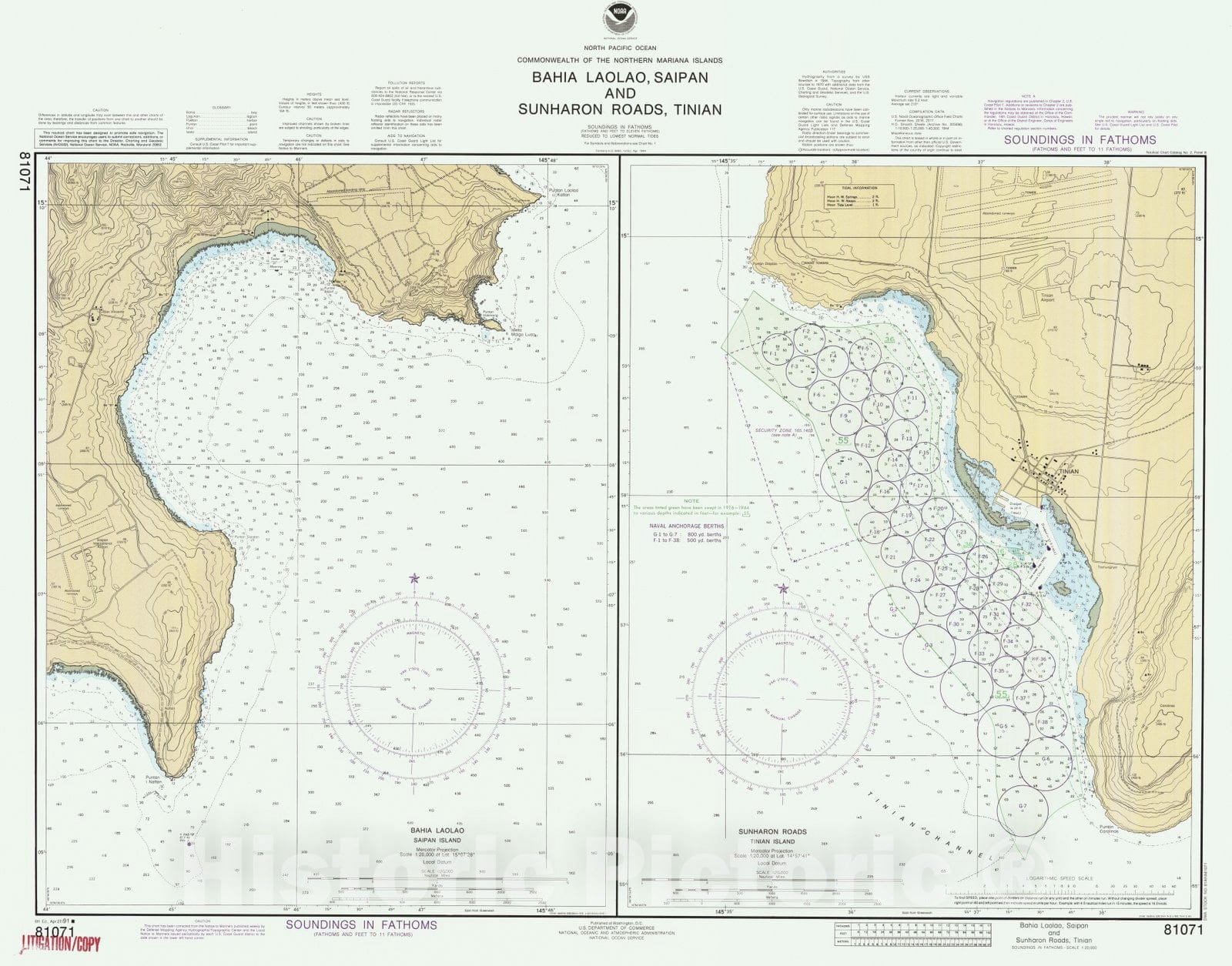 • .Historic Nautical Map - Bahia Laolao Saipan And Sunharon Roads Tinian, MP, 1991 NOAA Chart - Vintage Wall Art