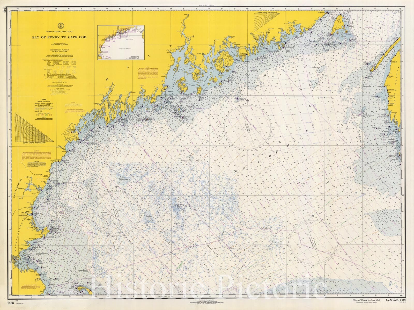Historic Nautical Map - Bay Of Fundy To Cape Cod, 1967 NOAA Chart - Maine, Massachusetts (ME, MA) - Vintage Wall Art