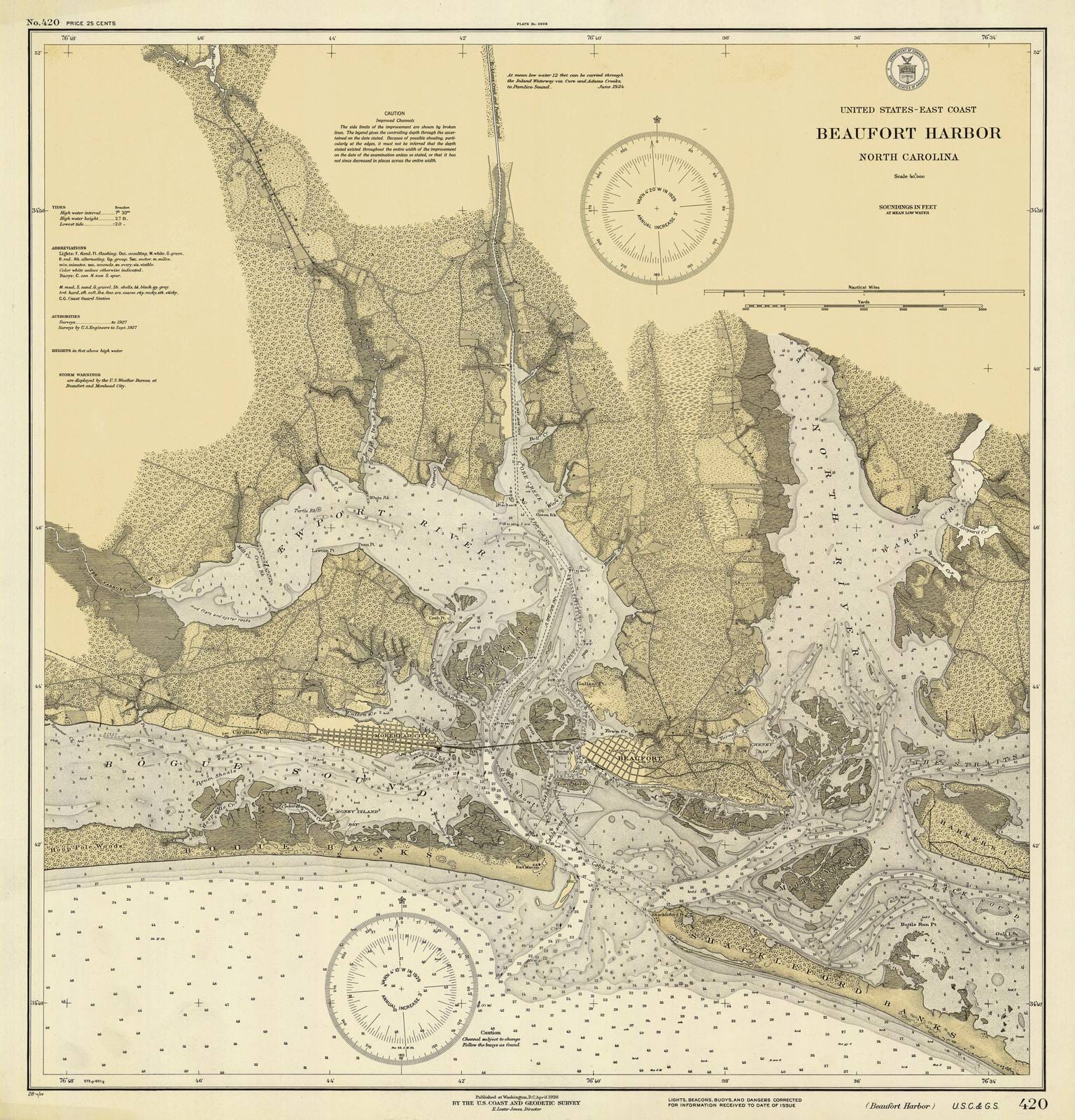 • .Historic Nautical Map - Beaufort Harbor, 1928 NOAA Chart - North Carolina (NC) - Vintage Wall Art