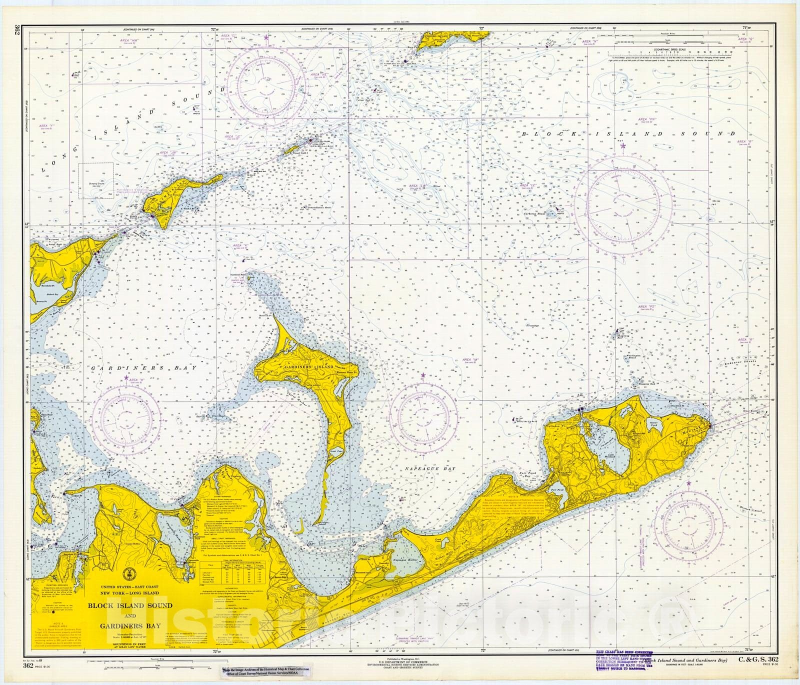 • .Historic Nautical Map - Block Island Sound And Gardiners Bay, 1969 NOAA Chart - New York (NY) - Vintage Wall Art