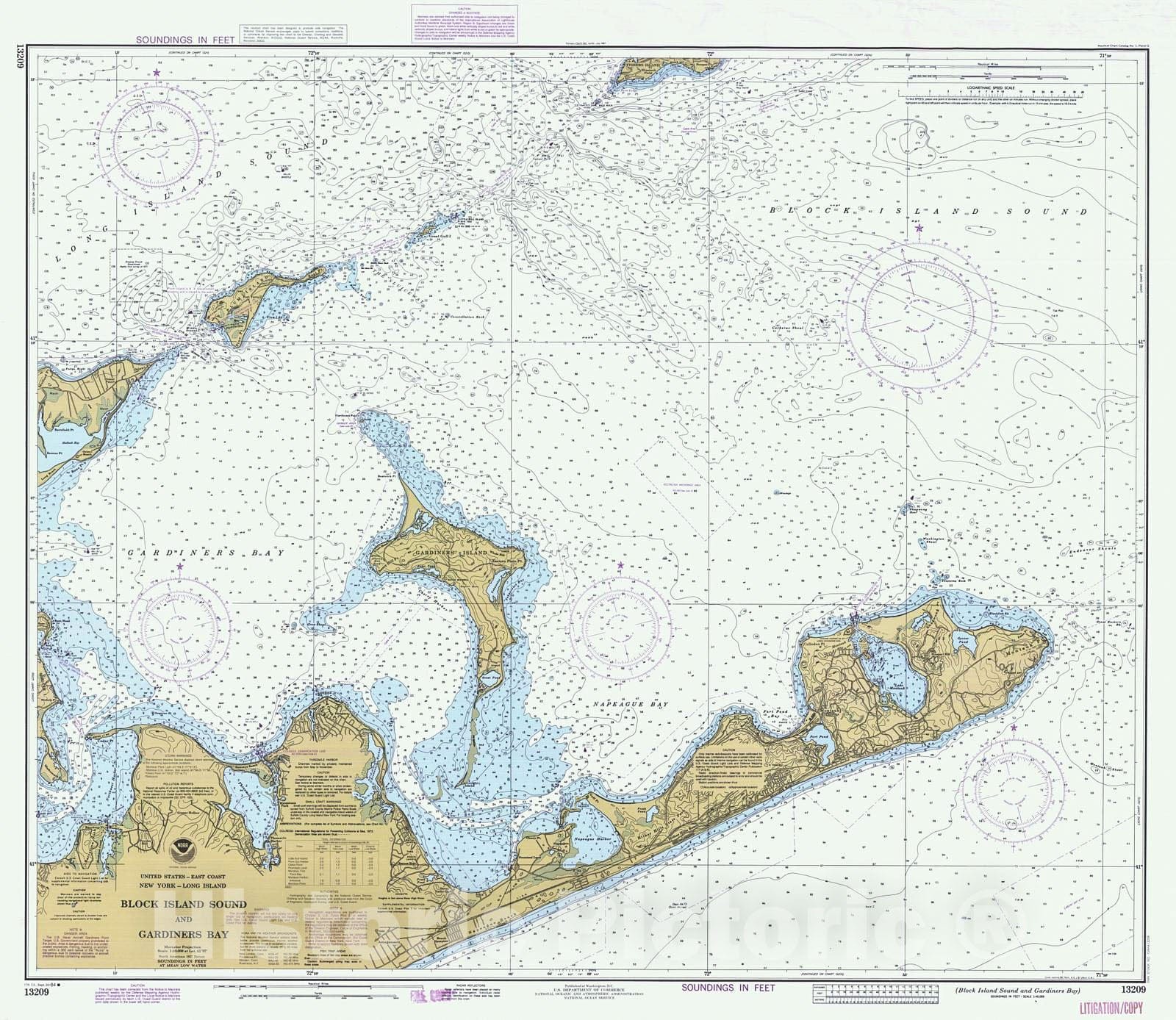 Historical Block Island Sound And Gardiners Bay | 28in x 24in 1984 Nautical Chart | NY Vintage Map | Fine Art Reproduction Print