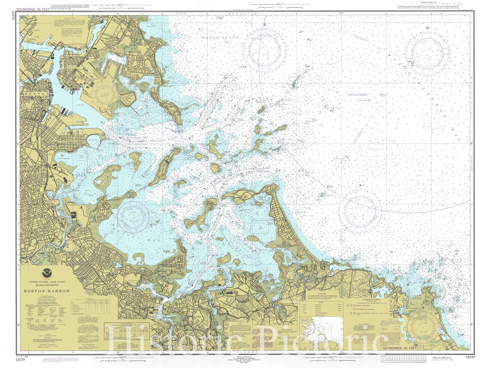 Historical Boston Harbor | 18in x 24in 1998 Nautical Chart | MA Vintage Map | Fine Art Reproduction Print