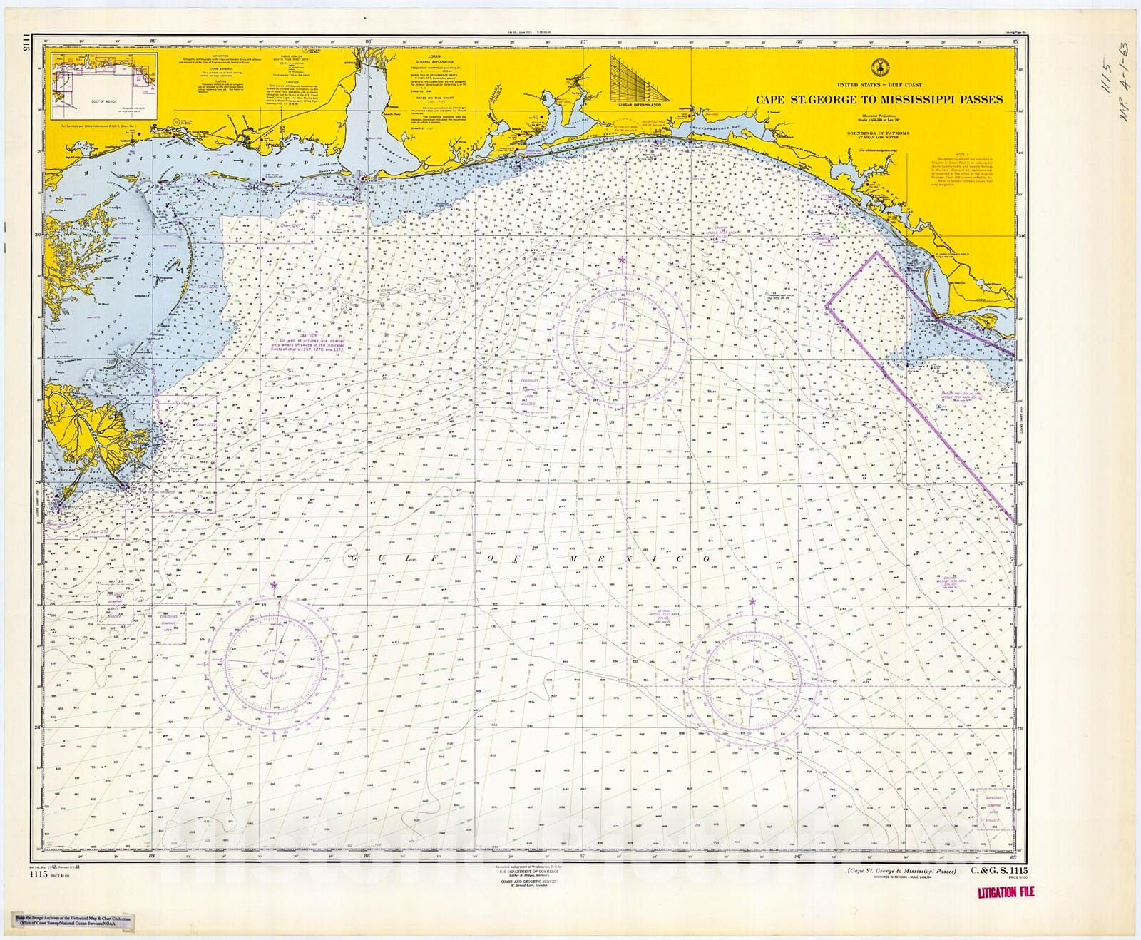 • .Historic Nautical Map - Cape St. George To Mississippi Passes, 1963 NOAA Chart - Louisiana, Florida (LA, FL) - Vintage Wall Art