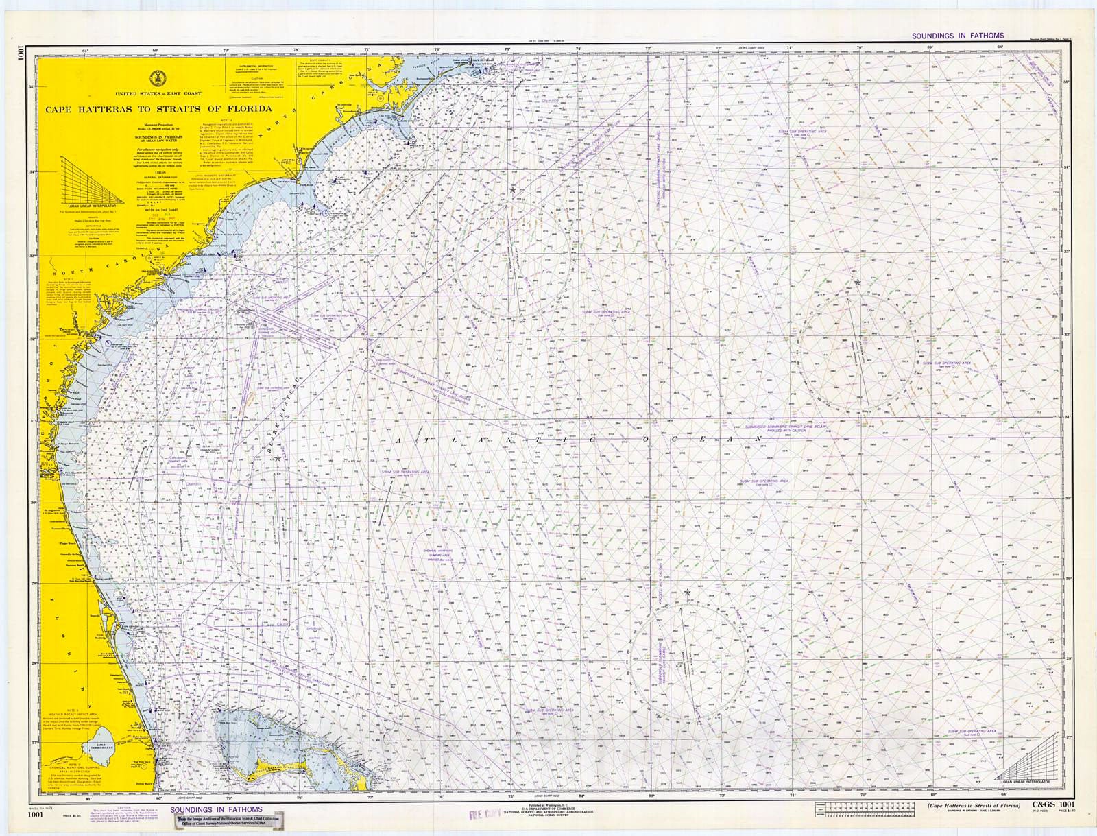 Historic Nautical Map - Cape Hatteras To Straits Of Florida, 1971 NOAA Chart - North Carolina, Florida (NC, FL) - Vintage Wall Art