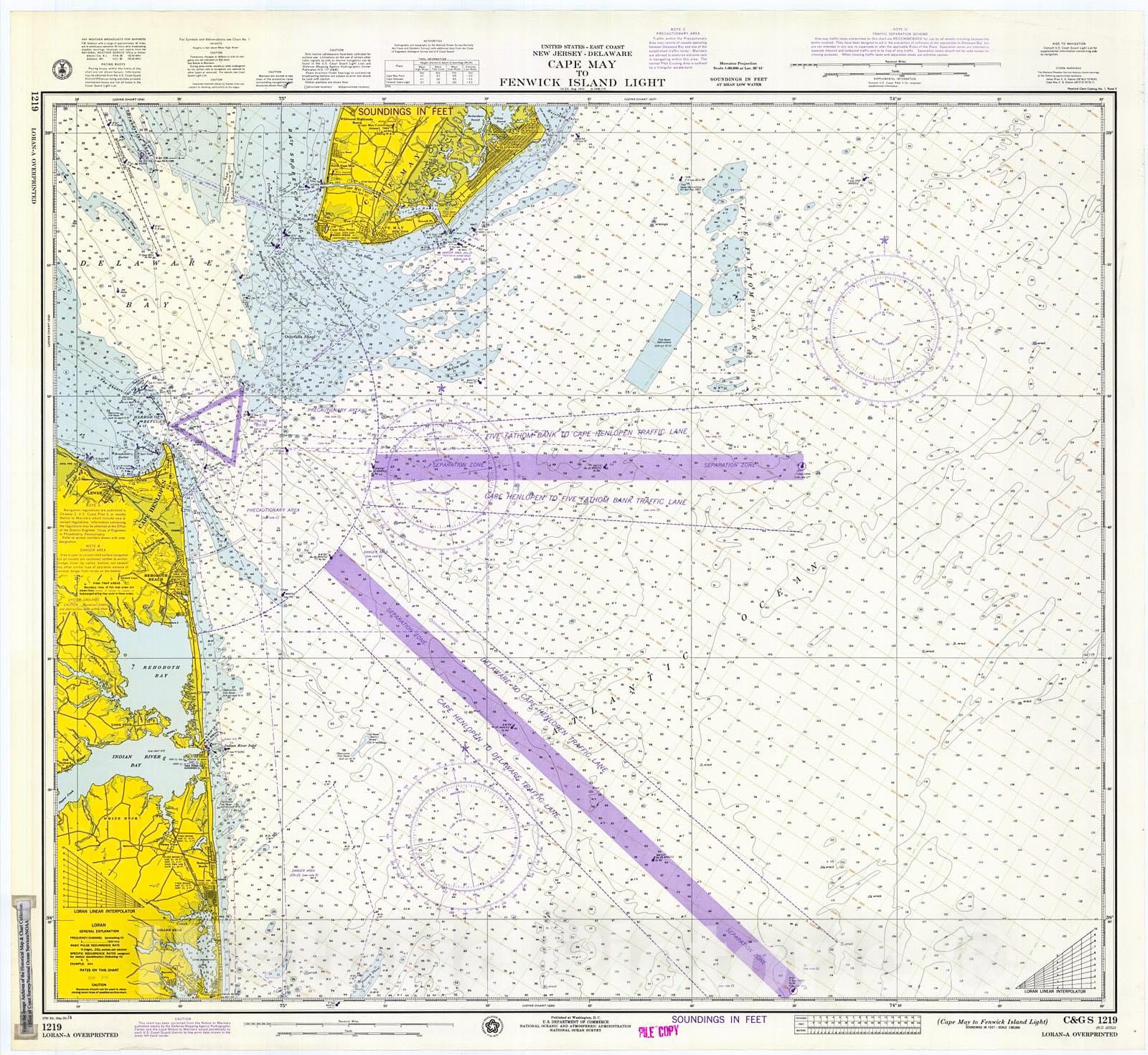 Historic Nautical Map - Cape May To Fenwick I. Light, 1974 NOAA Chart - New Jersey, Maryland (NJ, MD) - Vintage Wall Art