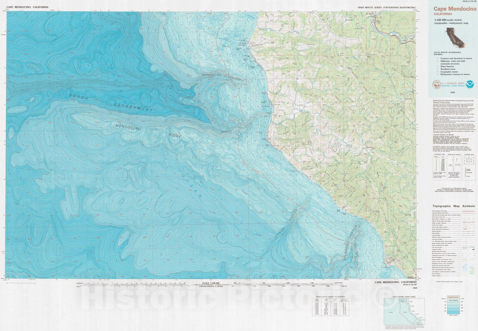 Historic Nautical Map - Cape Mendocino, CA, 1989 NOAA Topographic Bathymetric Historic Nautical Map - Vintage Wall Art