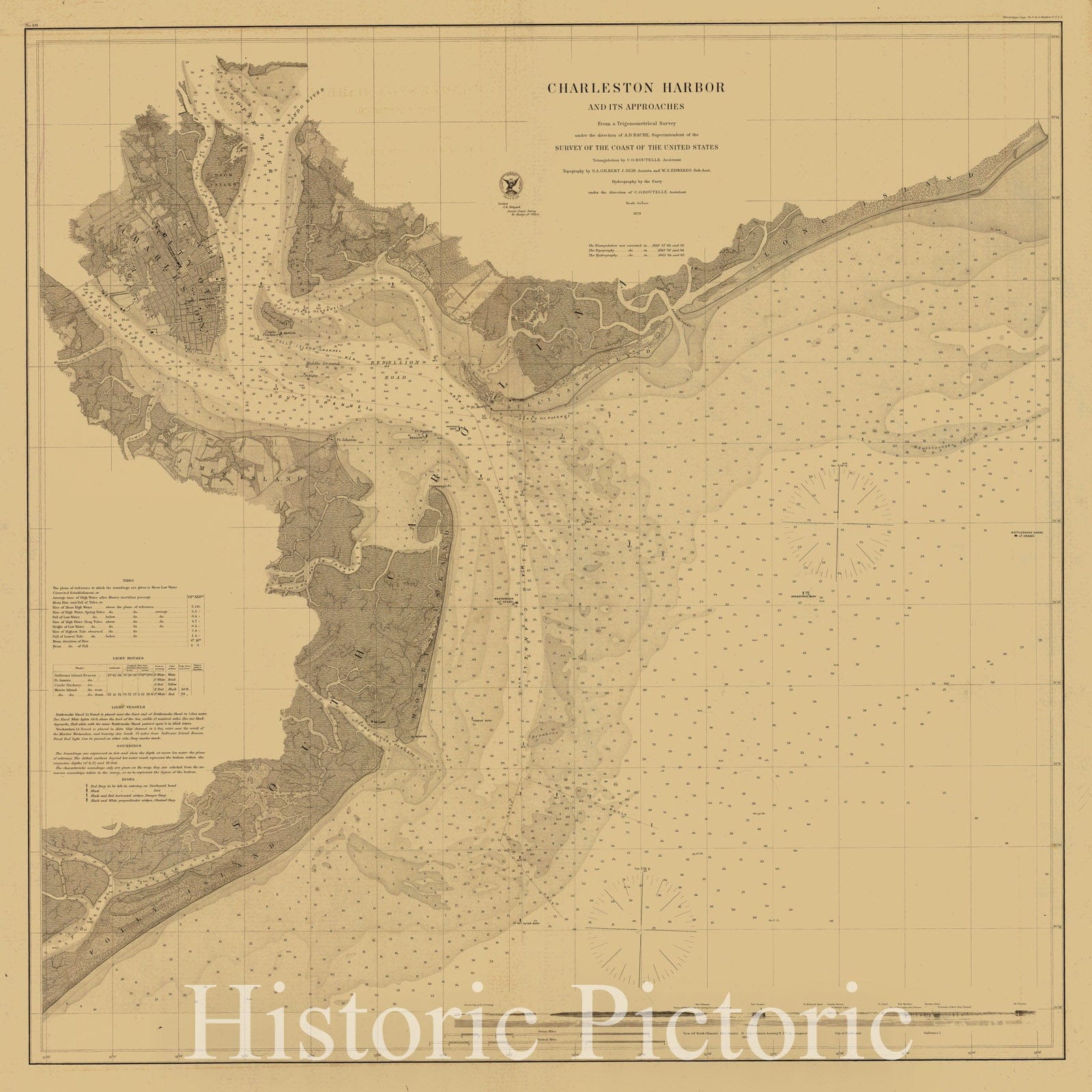 • .Historic Nautical Map - Charleston Harbor, 1870 NOAA Chart - South Carolina (SC) - Vintage Wall Art