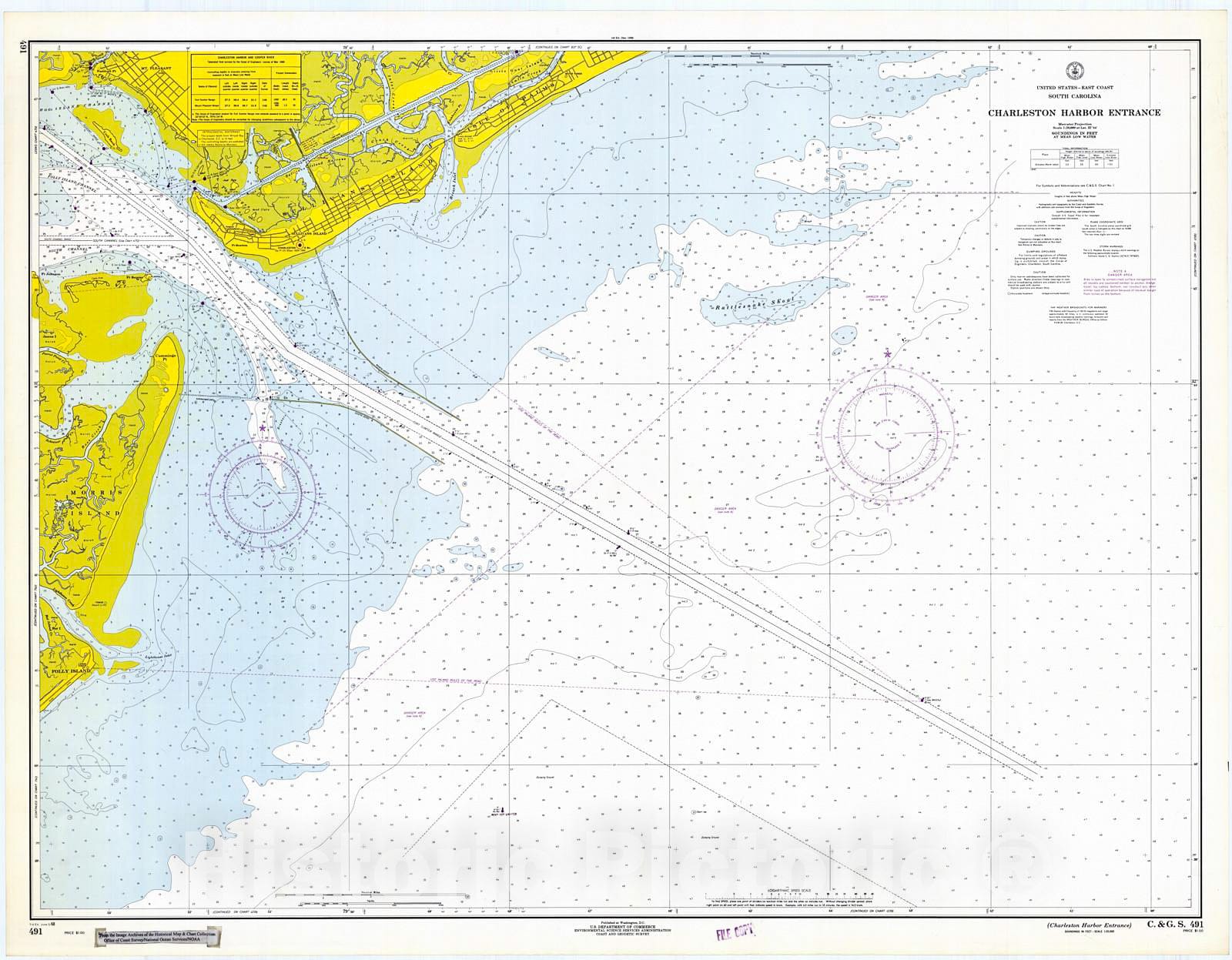 Historic Nautical Map - Charleston Harbor Entrance, 1968 NOAA Chart - South Carolina (SC) - Vintage Wall Art