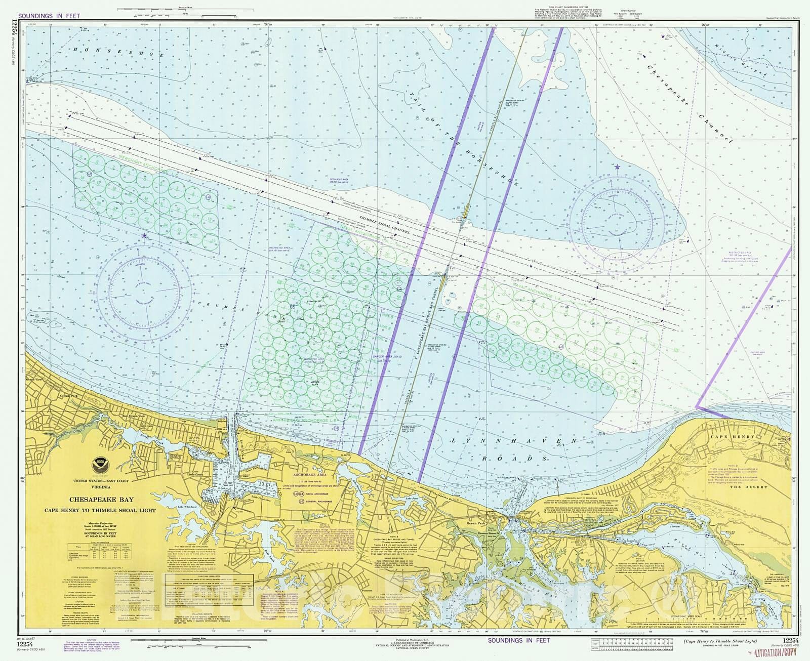 Historic Nautical Map - Chesapeake Bay - Cape Henry To Thimble Shoal Light, 1977 NOAA Chart - Virginia (VA) - Vintage Wall Art