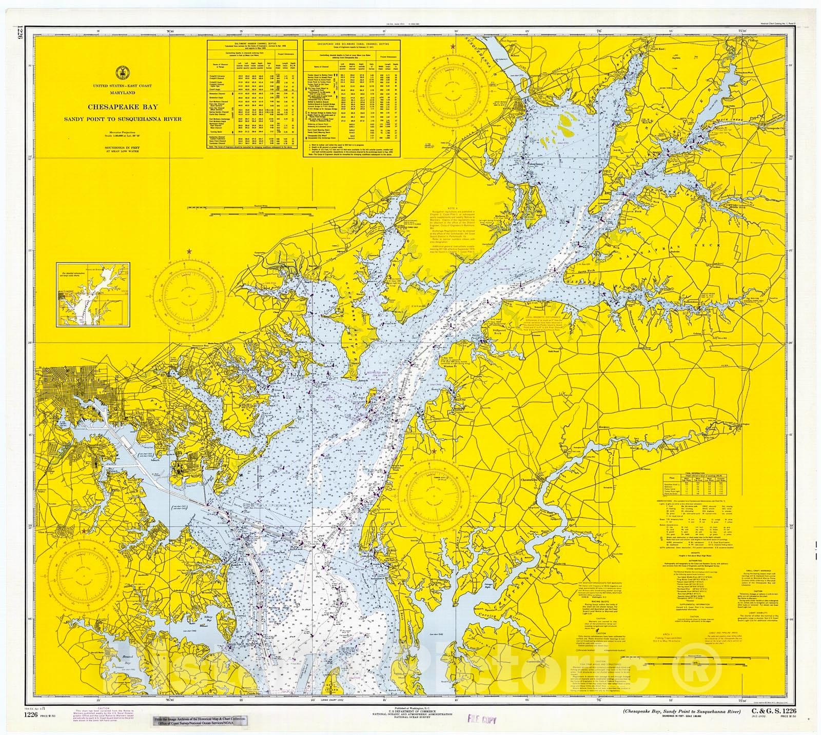 • Historic Nautical Map - Chesapeake Bay - Sandy Point To Head Of Bay, 1971 NOAA Chart - Maryland (MD) - Vintage Wall Art