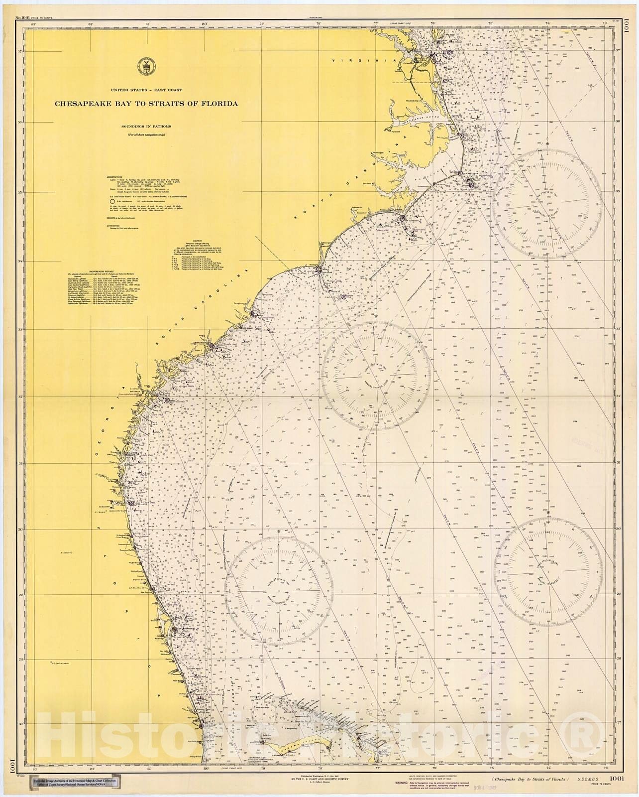 Historic Nautical Map - Chesapeake Bay To Straits Of Florida, 1942 NOAA Chart - Florida, Virginia (FL, VA) - Vintage Wall Art