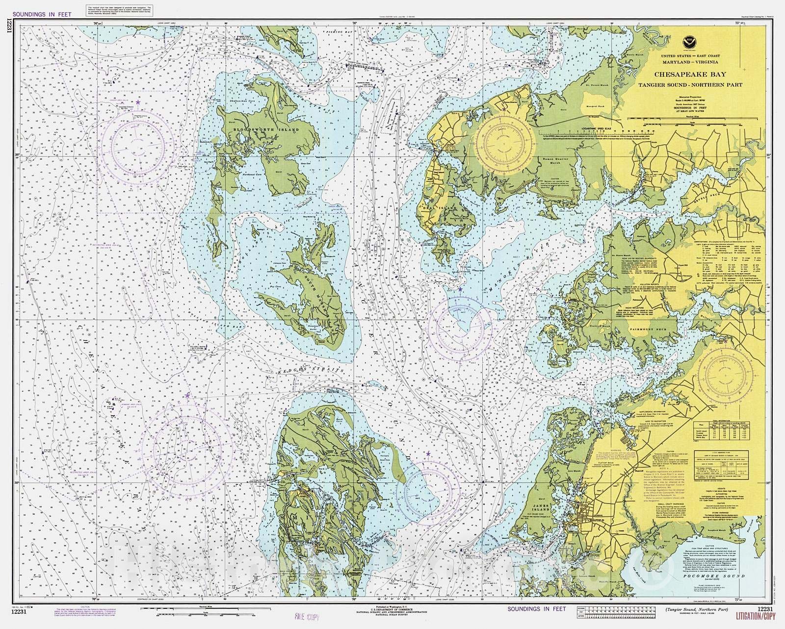 Historic Nautical Map - Chesapeake Bay - Tangier Sound Northern Part, 1982 NOAA Chart - Virginia, Maryland (VA, MD) - Vintage Wall Art