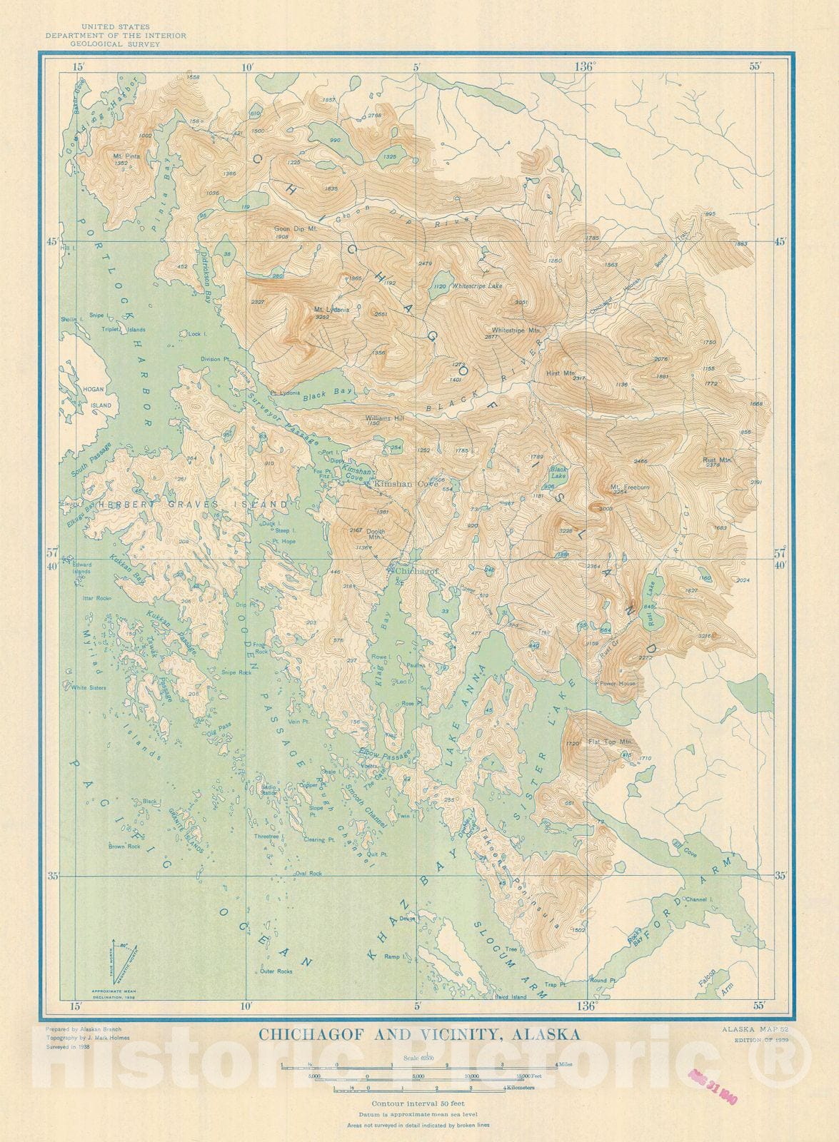 Historic Nautical Map - Chichagof And Vicinity, 1939 NOAA Chart - Vintage Wall Art