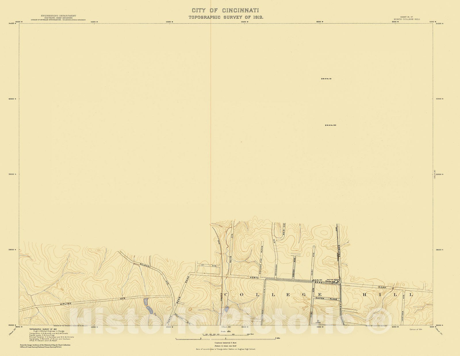 • .Historic Nautical Map - City Of Cincinnati, Sheet 37, 1912 NOAA Topographic - Vintage Wall Art