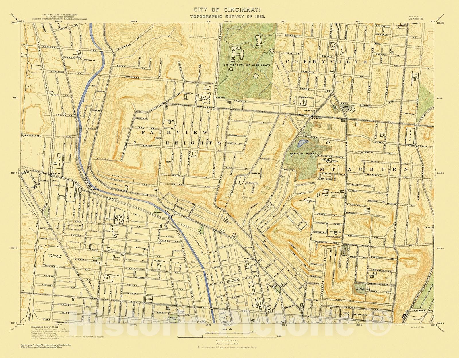 Historic Nautical Map - City Of Cincinnati, Sheet 29, 1912 NOAA Topographic - Vintage Wall Art