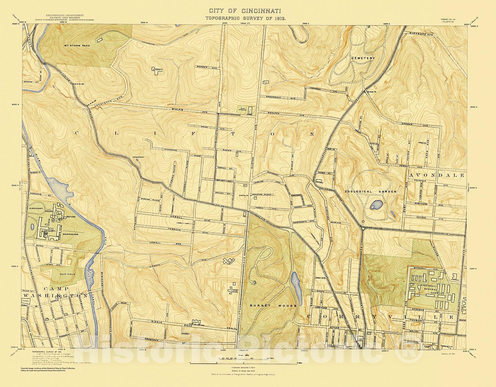 • .Historic Nautical Map - City Of Cincinnati, Sheet 28, 1912 NOAA Topographic - Vintage Wall Art