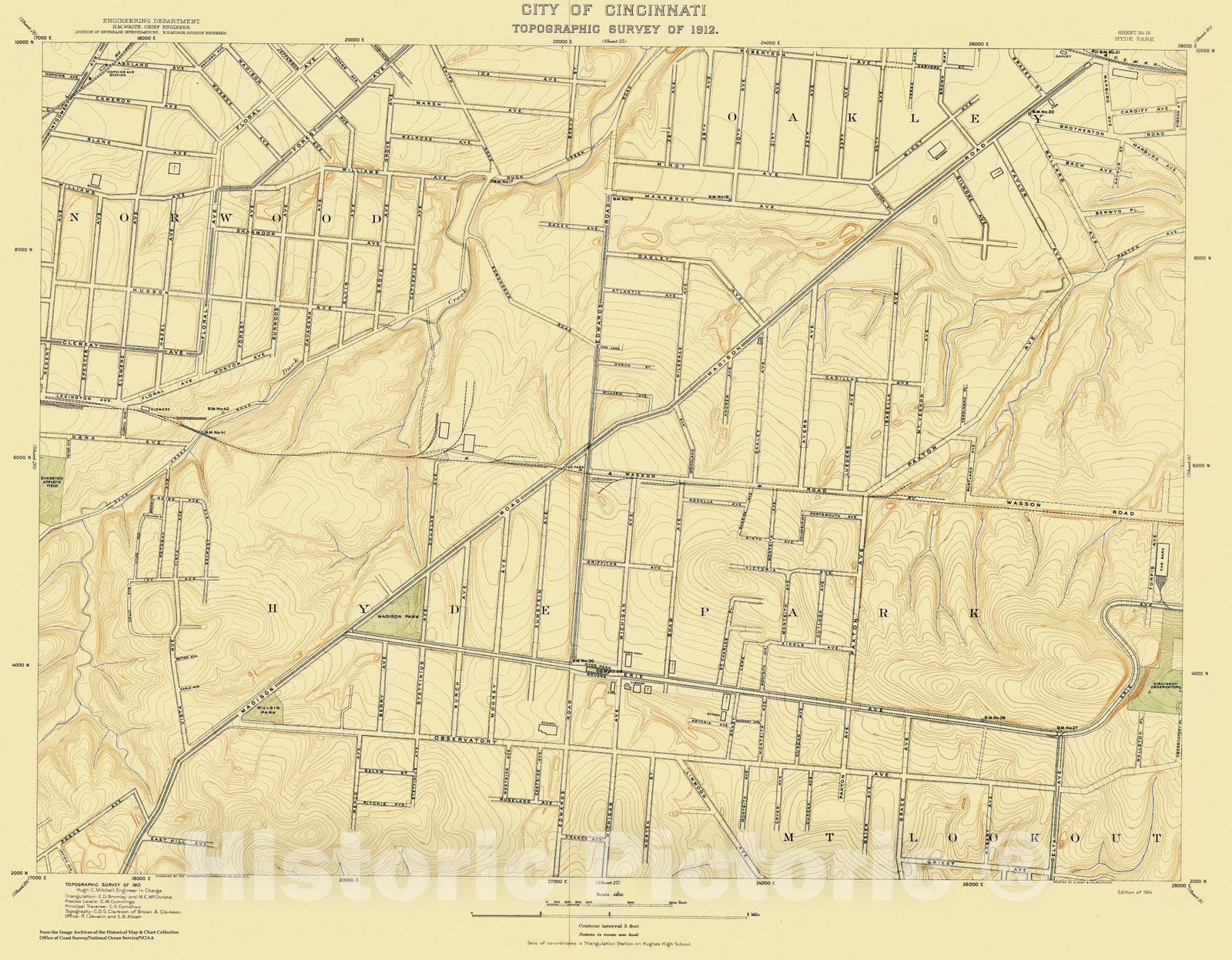 Historic Nautical Map - City Of Cincinnati, Sheet 16, 1912 NOAA Topographic - Vintage Wall Art