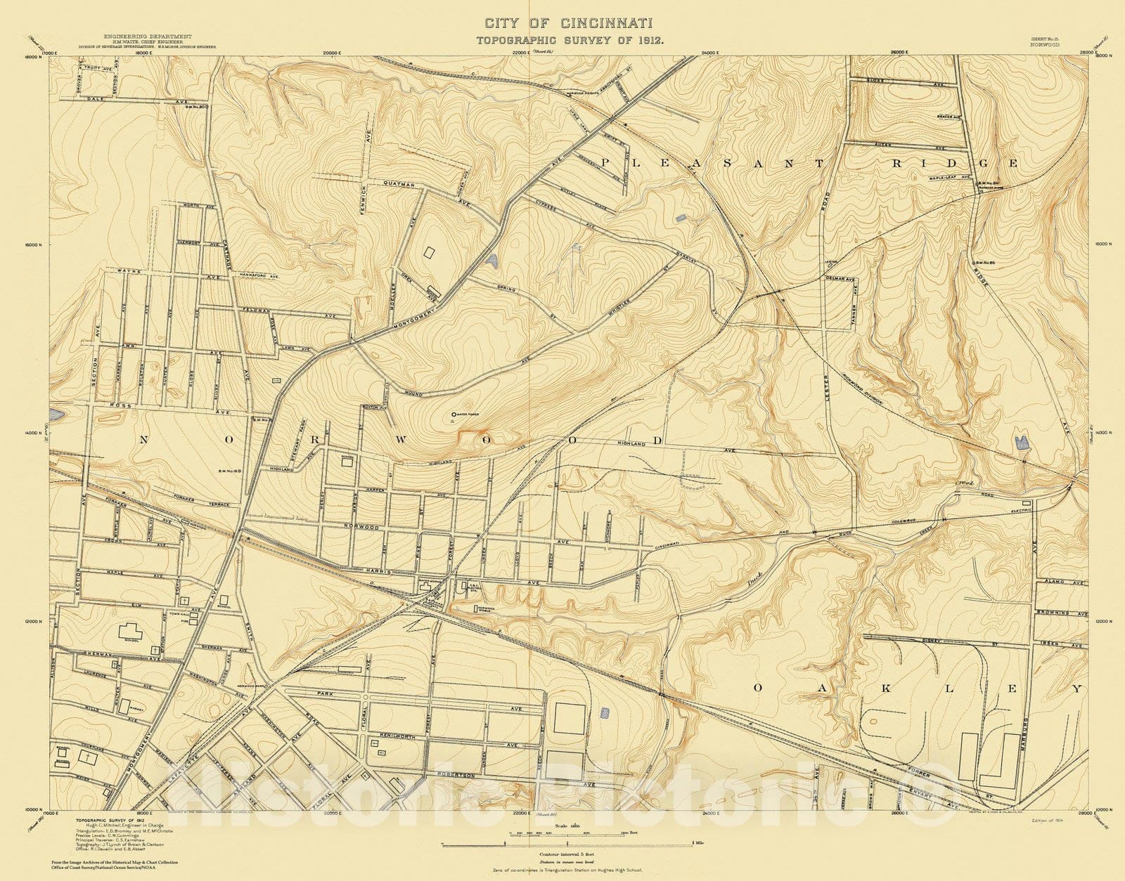 Historic Nautical Map - City Of Cincinnati, Sheet 15, 1912 NOAA Topographic - Vintage Wall Art