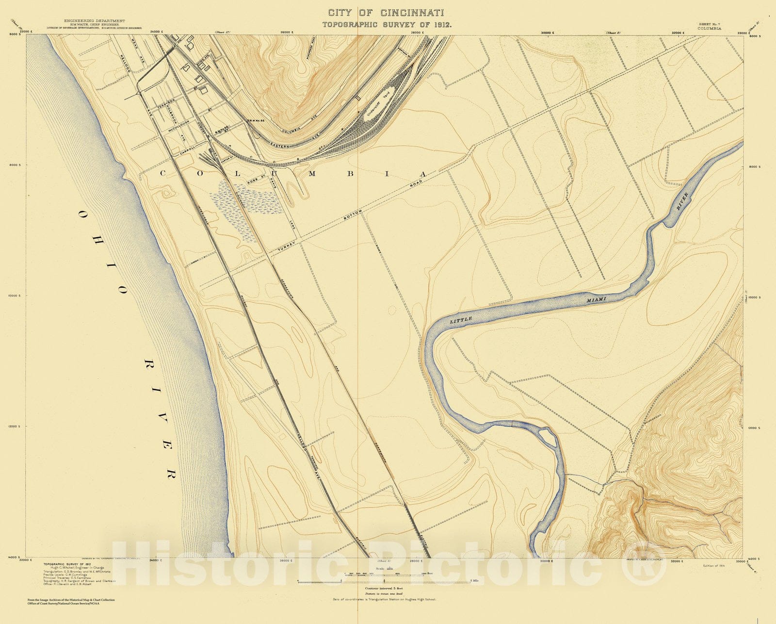 Historic Nautical Map - City Of Cincinnati, Sheet 7, 1912 NOAA Topographic - Vintage Wall Art