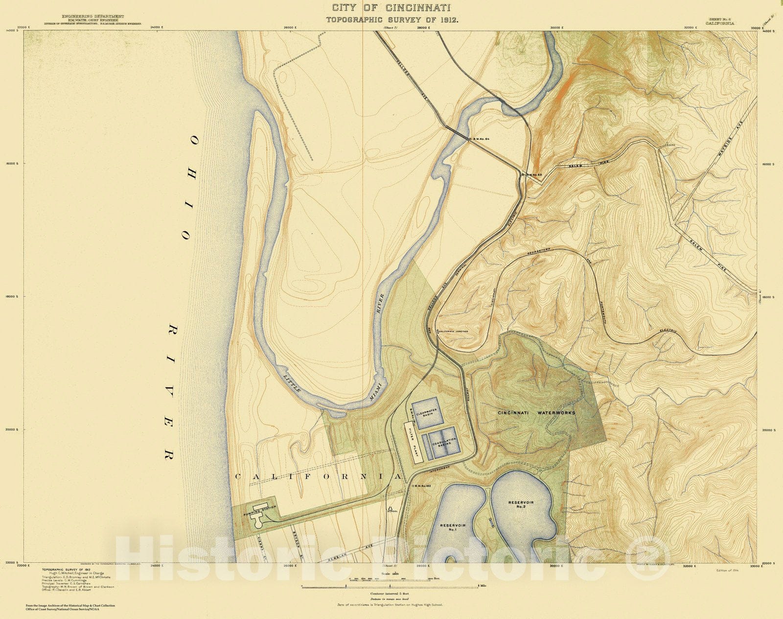 Historic Nautical Map - City Of Cincinnati, Sheet 6, 1912 NOAA Topographic - Vintage Wall Art