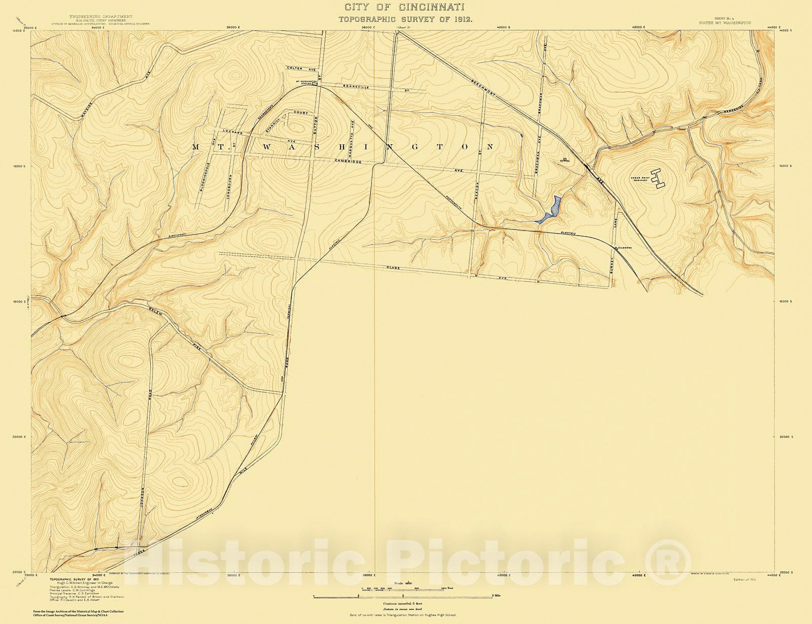 Historic Nautical Map - City Of Cincinnati, Sheet 4, 1912 NOAA Topographic - Vintage Wall Art