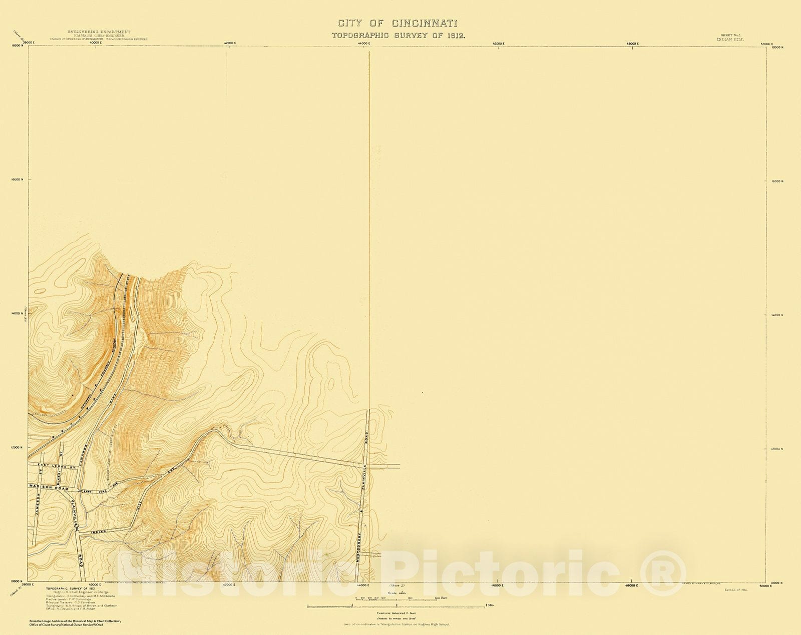 • .Historic Nautical Map - City Of Cincinnati, Sheet 1, 1912 NOAA Topographic - Vintage Wall Art