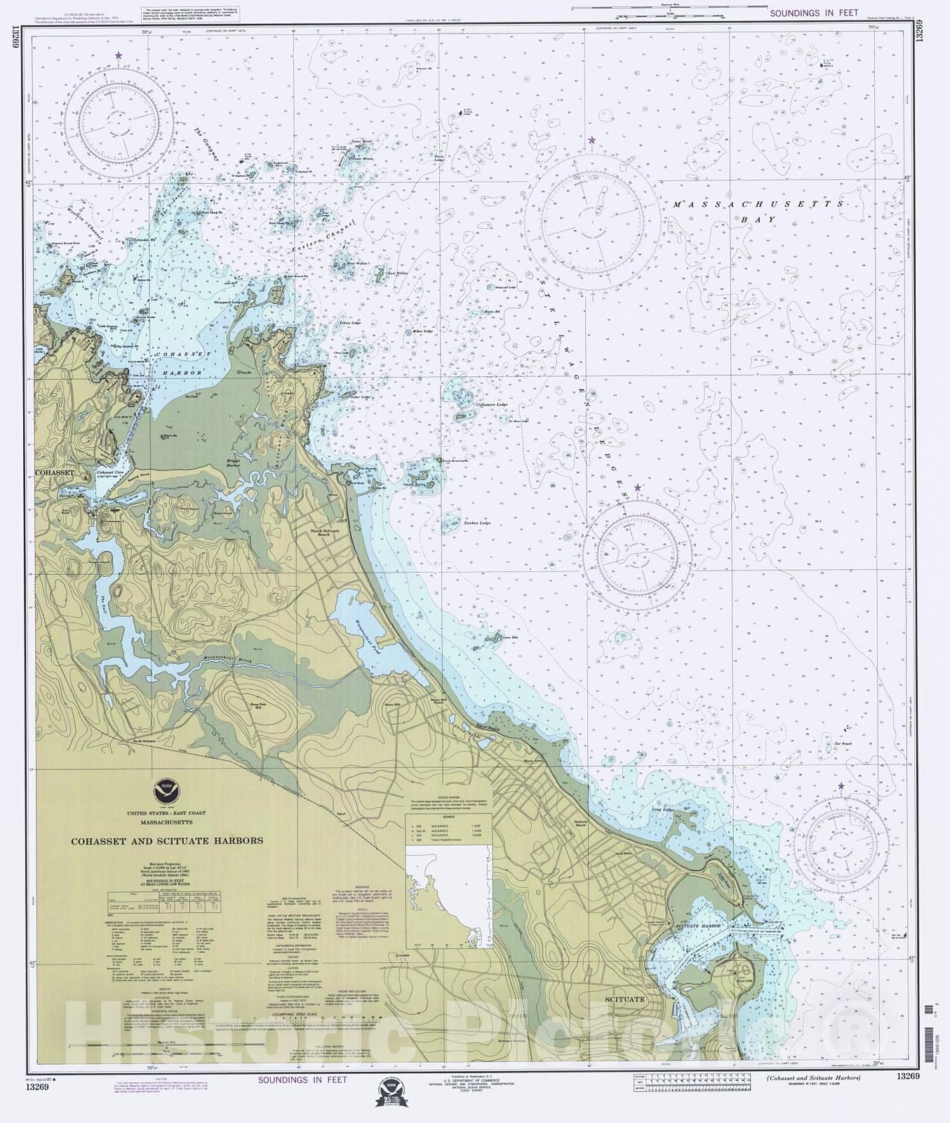 Historical Cohasset And Scituate Harbors | 24in x 28in 1995 Nautical Chart | MA Vintage Map | Fine Art Reproduction Print