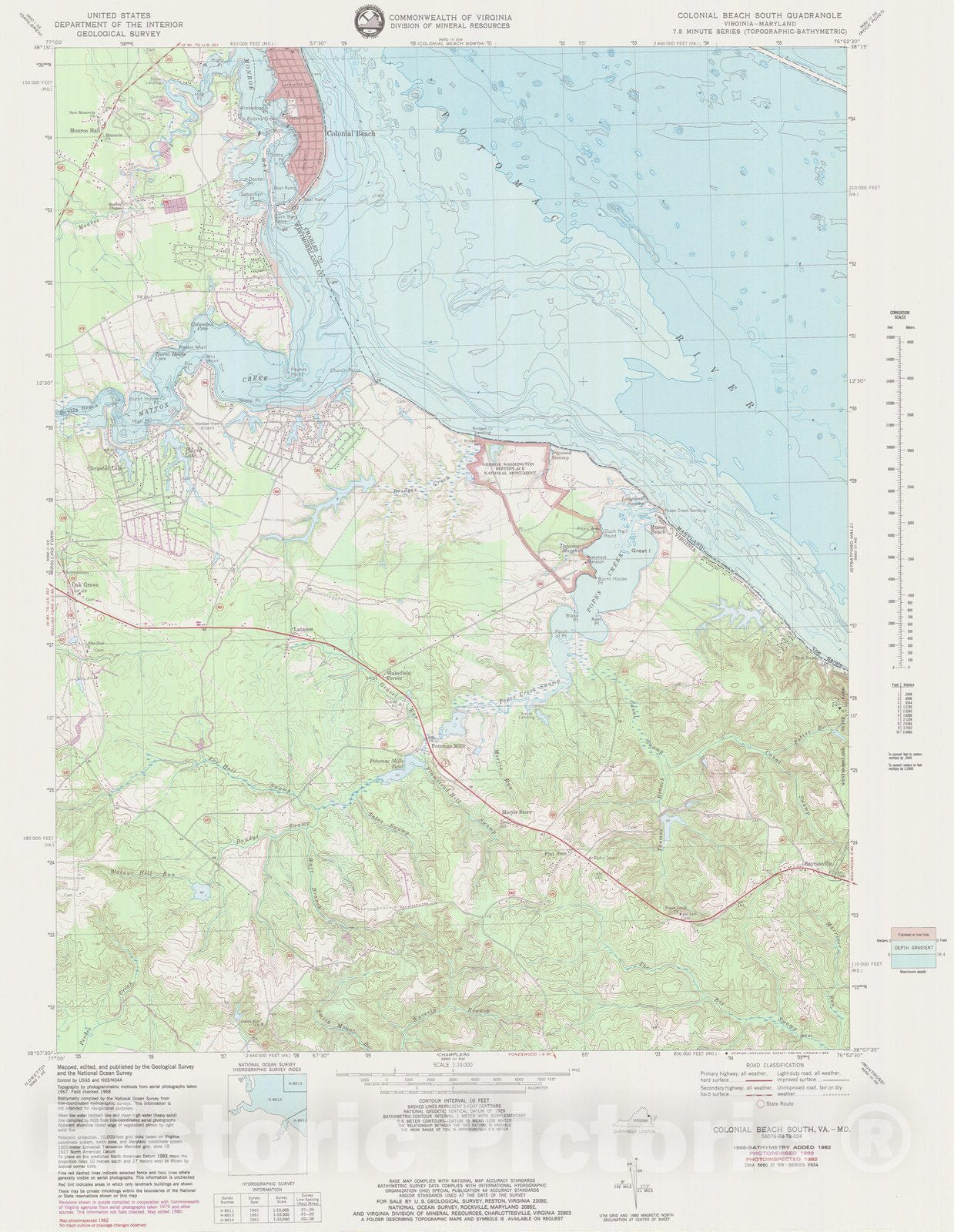 Historic Nautical Map - Colonial Beach South, MD, VA, 1980 NOAA Topographic Bathymetric Historic Nautical Map - Vintage Wall Art