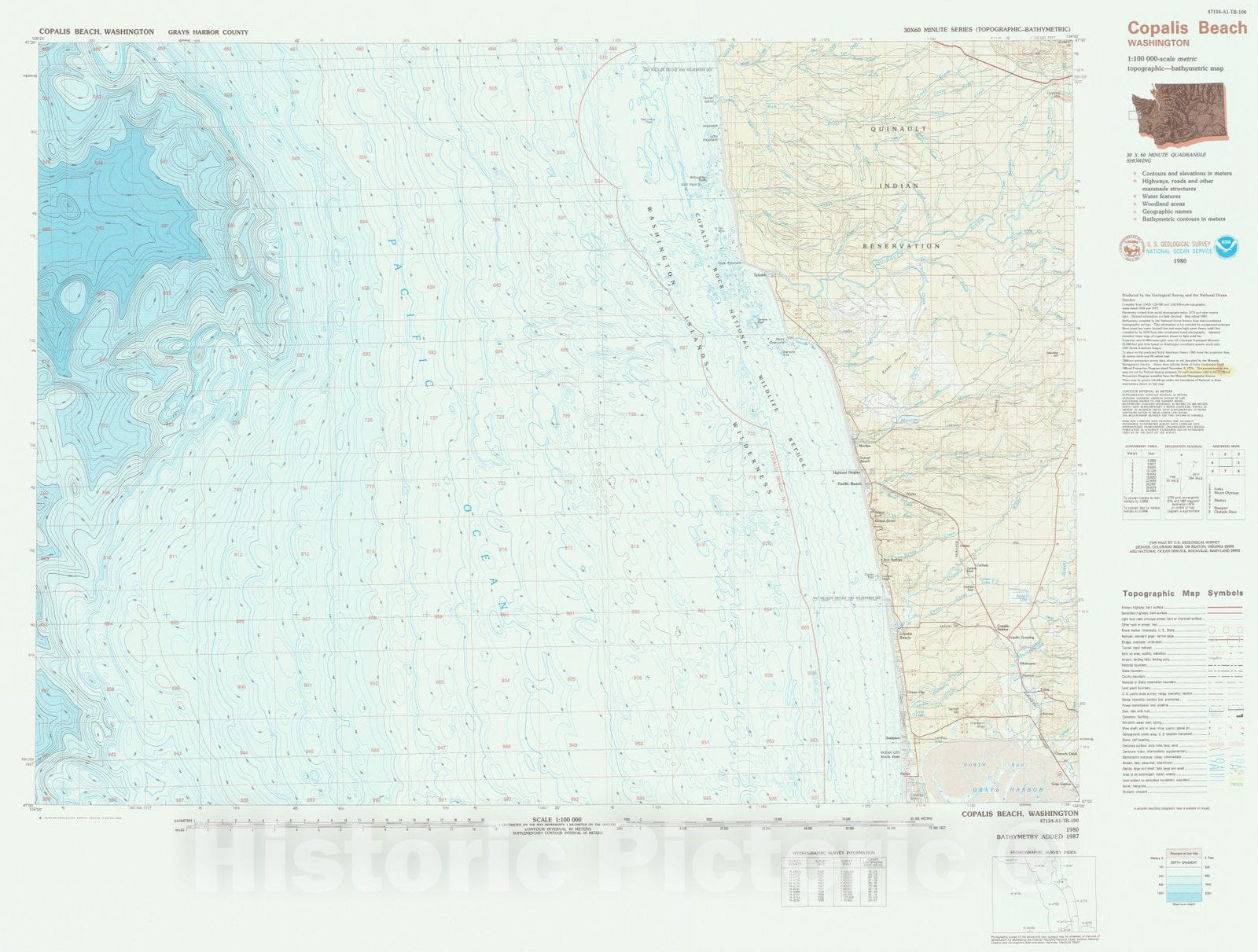 • Historic Nautical Map - Copalis Beach, WA, 1980 NOAA Topographic Bathymetric Historic Nautical Map - Vintage Wall Art