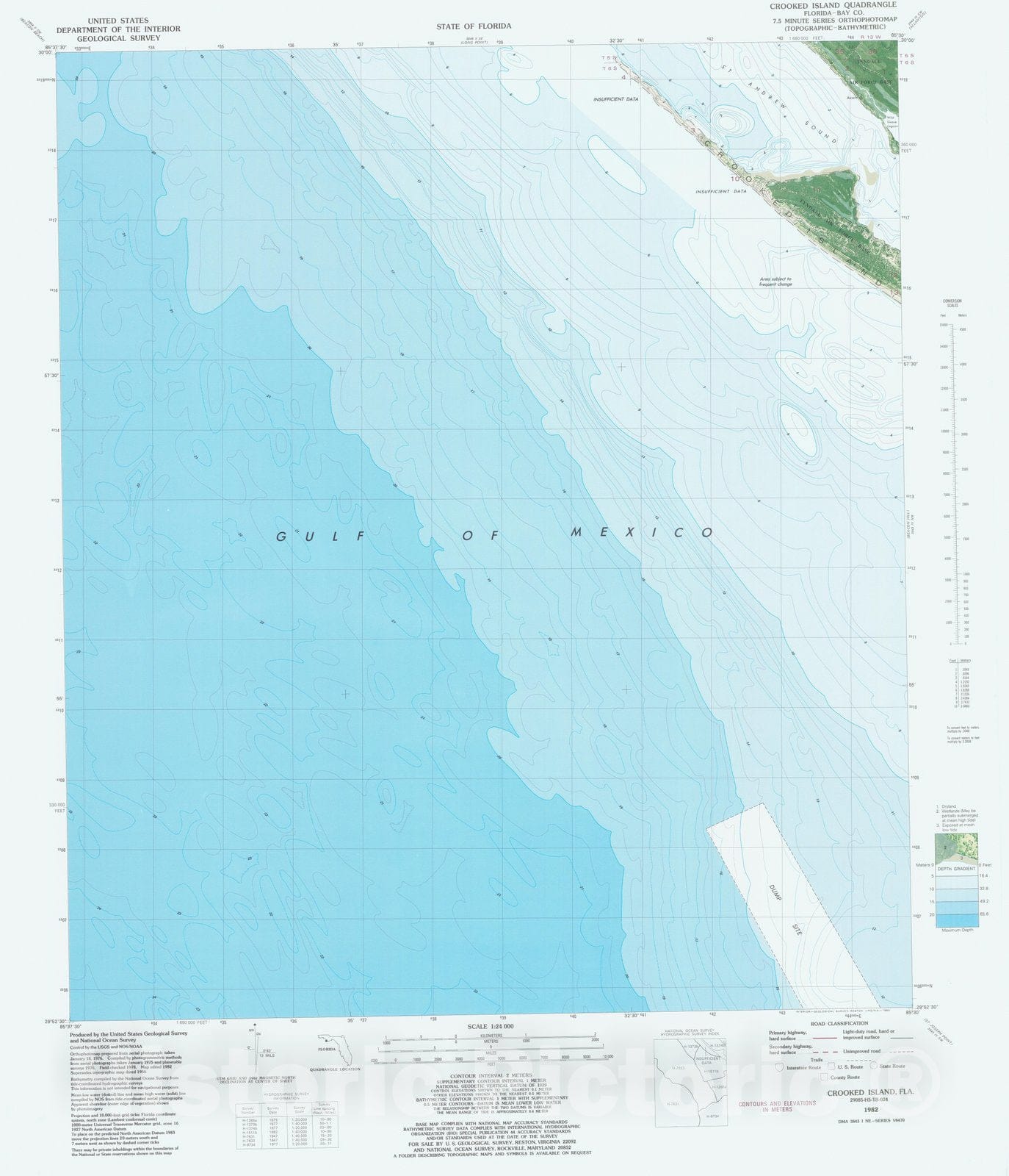 Historic Nautical Map - Crooked Island Fla, FL, 1982 NOAA Topographic Bathymetric Historic Nautical Map - Vintage Wall Art