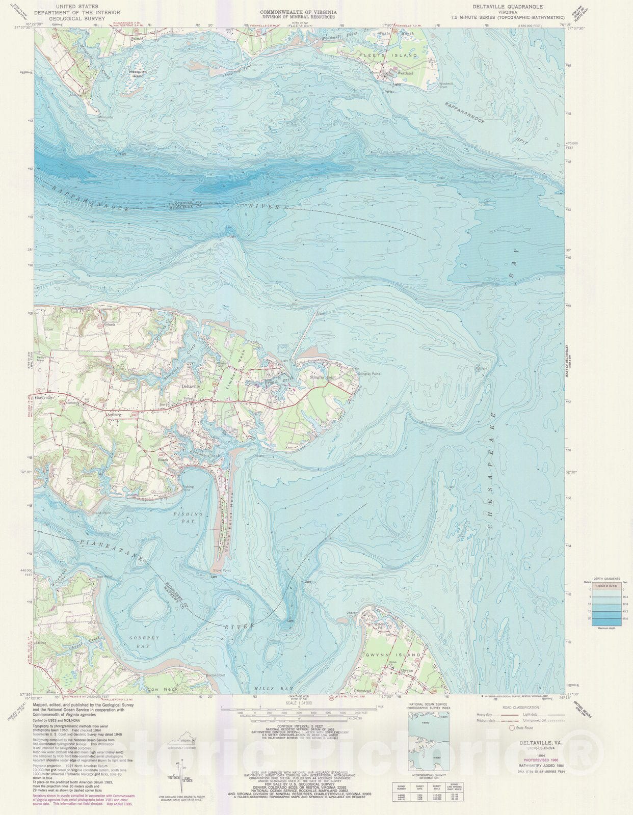 Historic Nautical Map - Deltaville, VA, 1986 NOAA Topographic Bathymetric Historic Nautical Map - Vintage Wall Art
